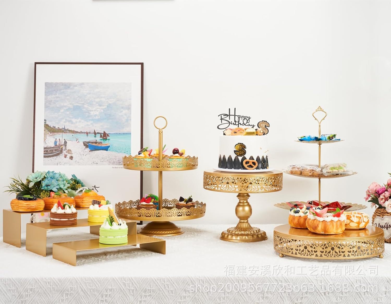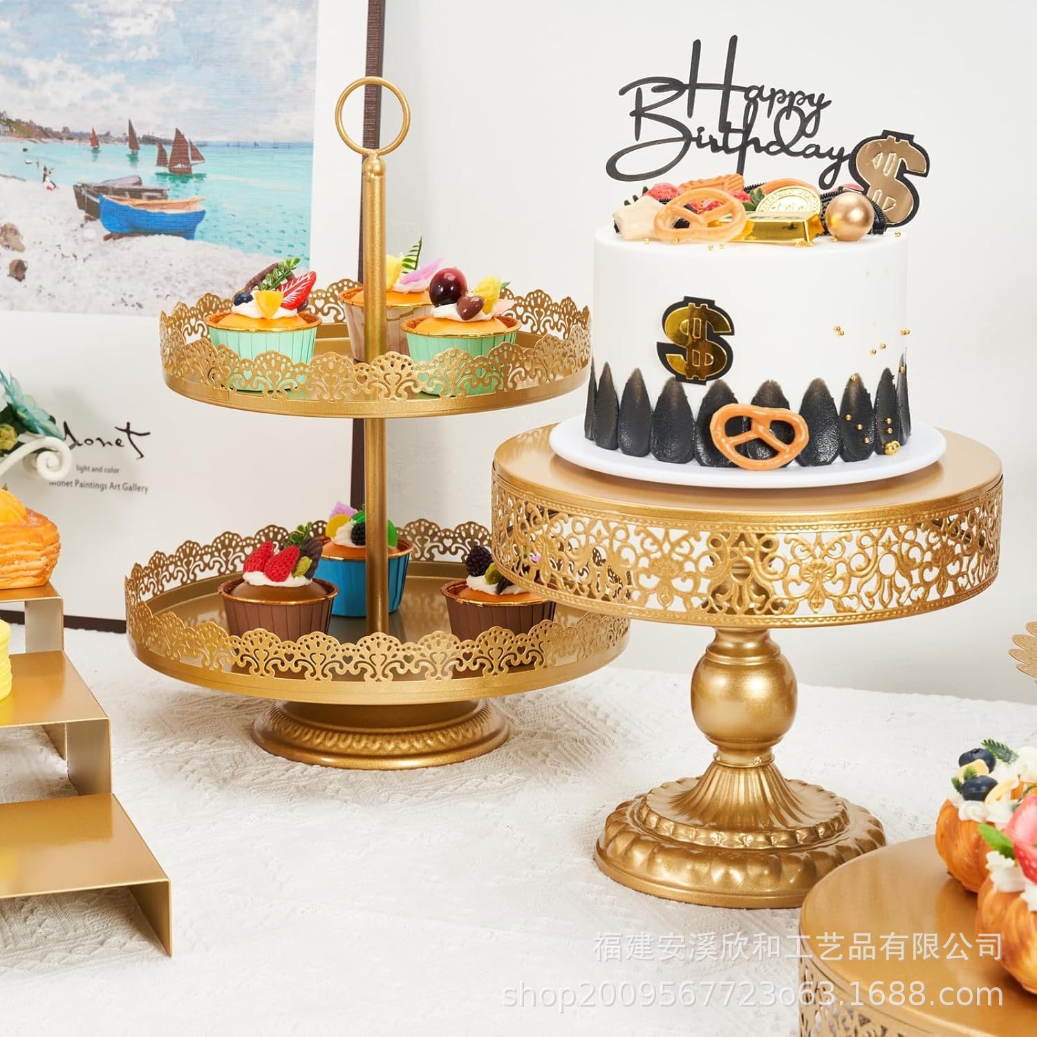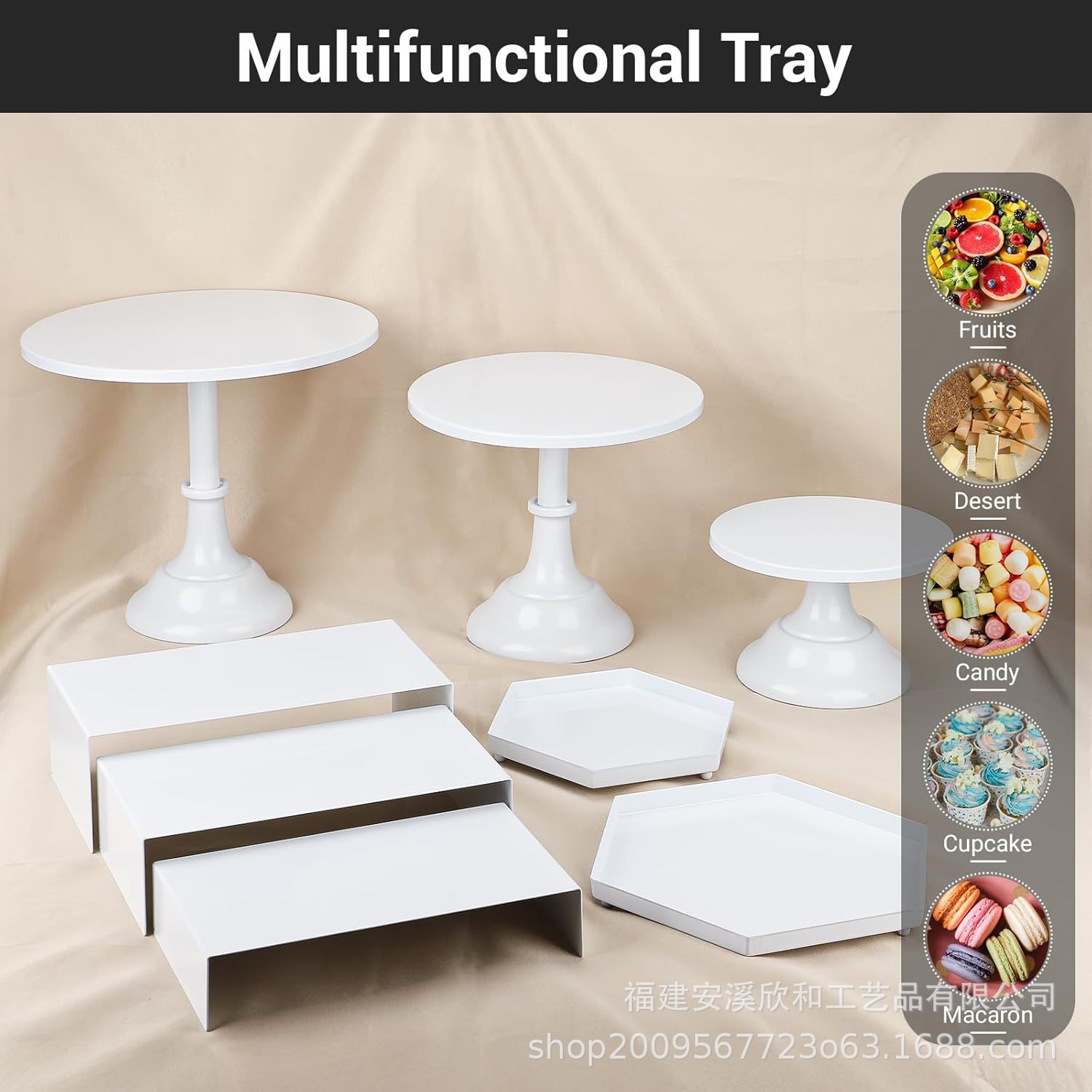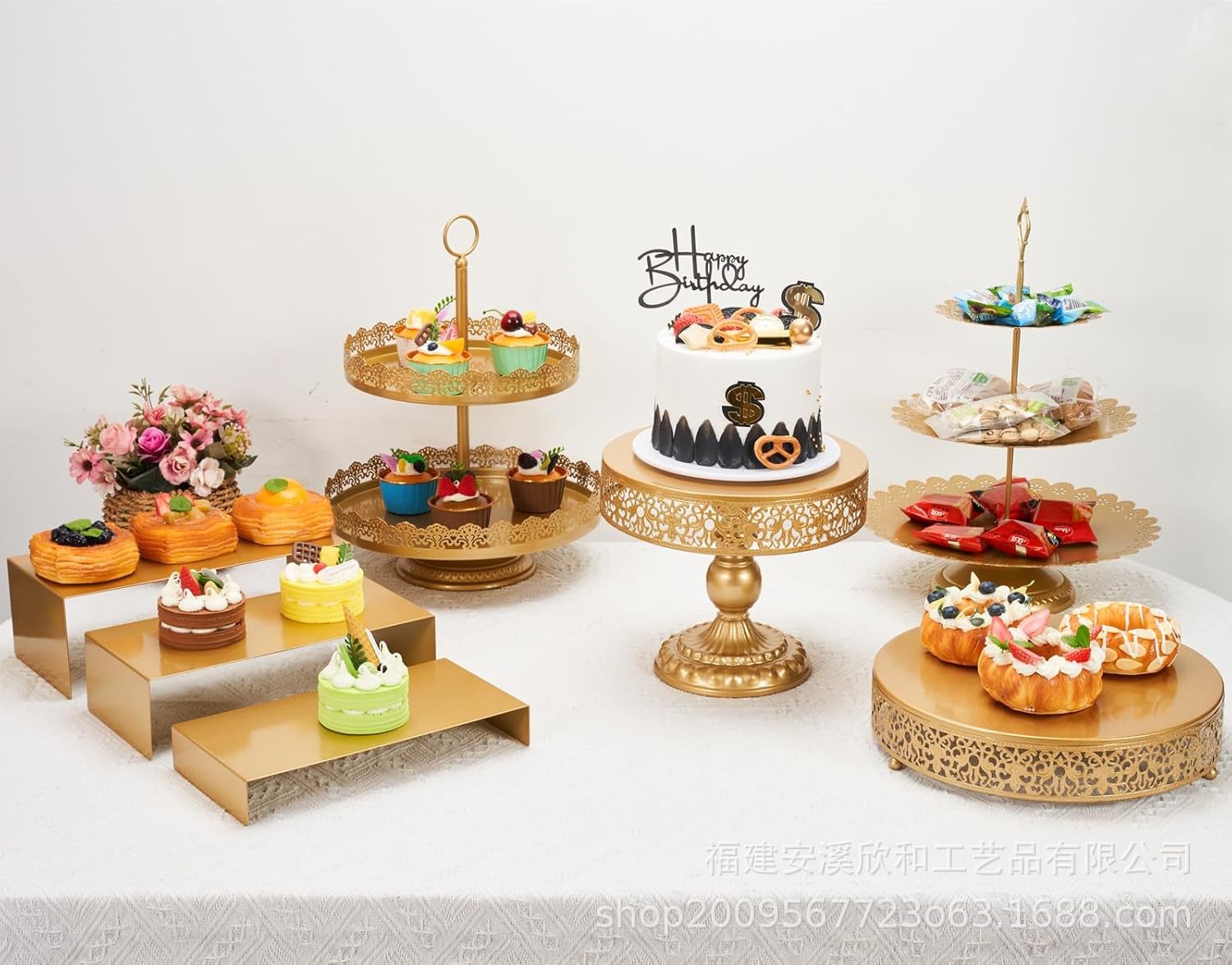 Estante de pastel blanco / dorado, estante de pastel redondo, bandeja de fruta de metal de boda, bandeja de postres de fiesta de celebración