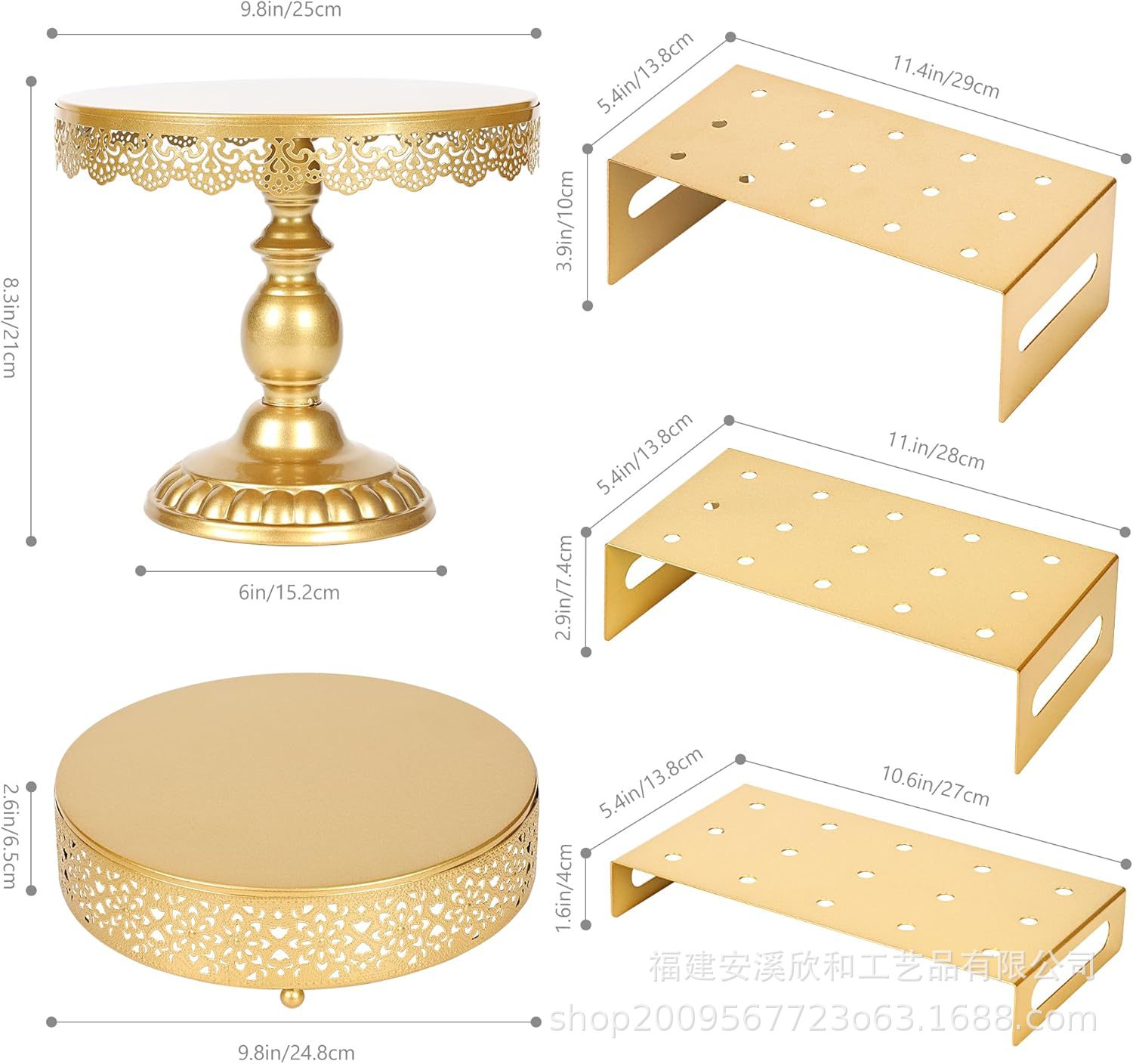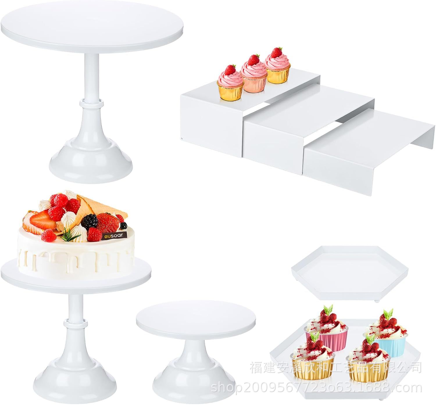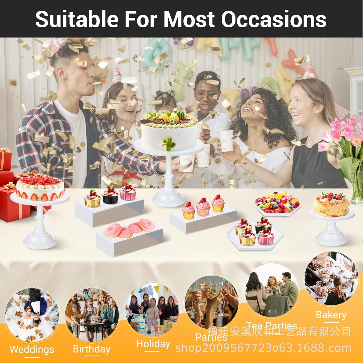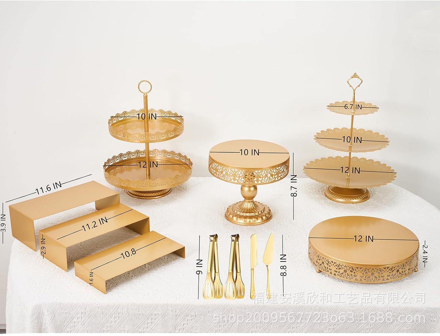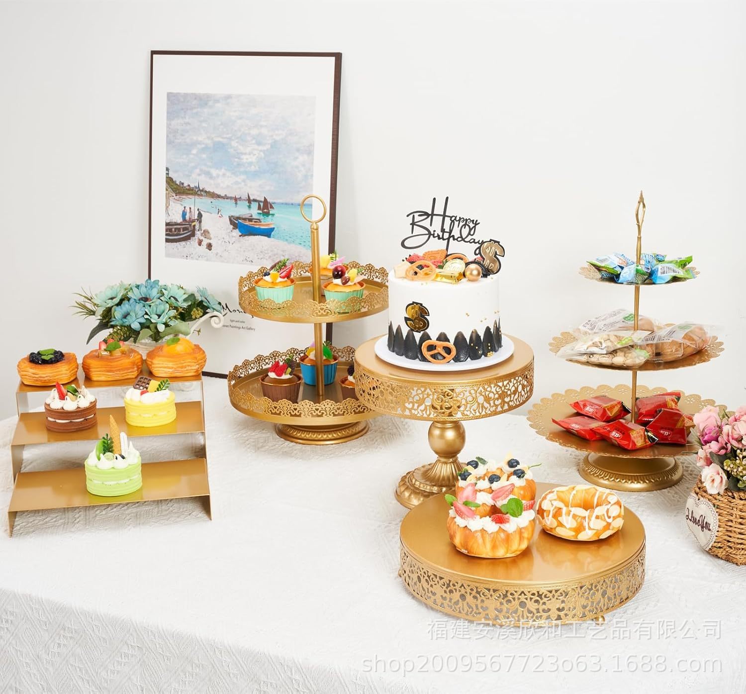 Estante de pastel blanco / dorado, estante de pastel redondo, bandeja de fruta de metal de boda, bandeja de postres de fiesta de celebración