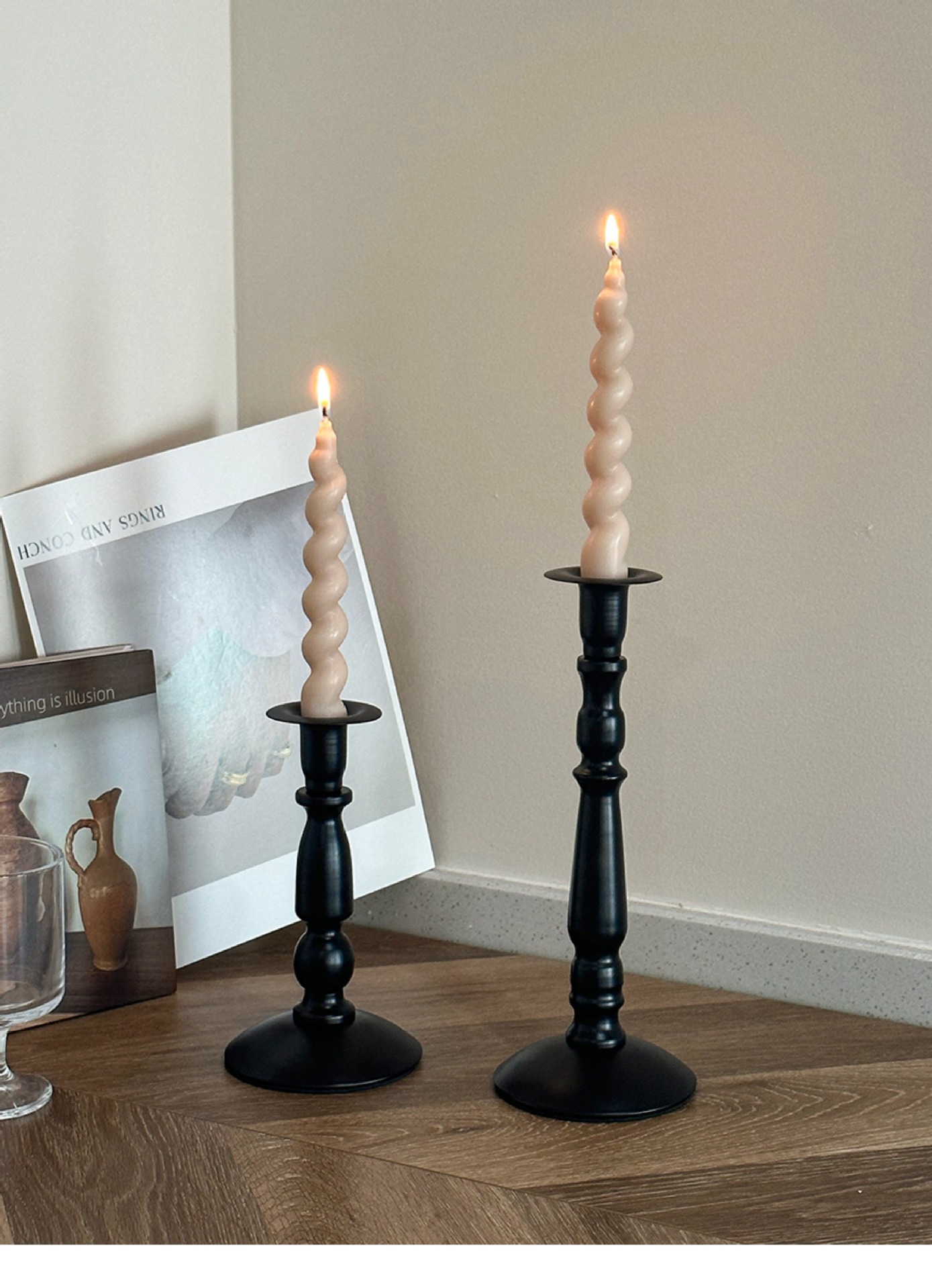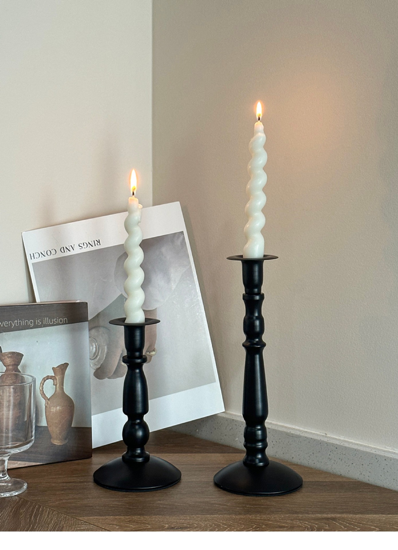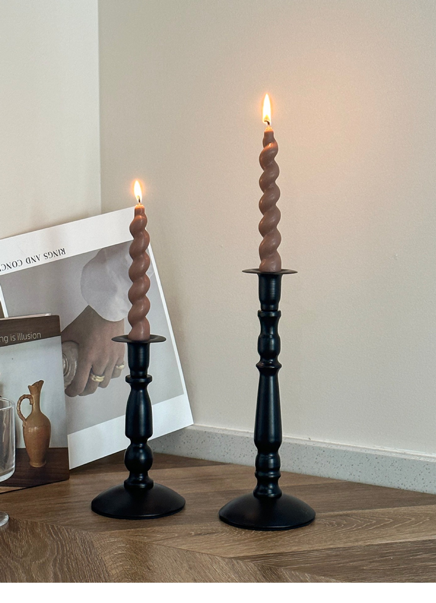 Cross-border ins retro americano candelabro de hierro forjado atmósfera decoración de mesa de comedor columna romana candelabro largo