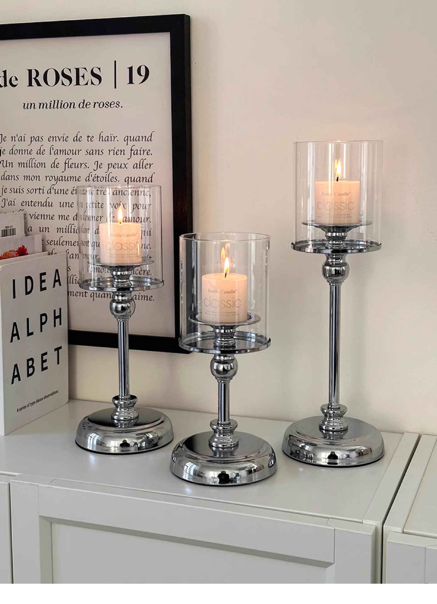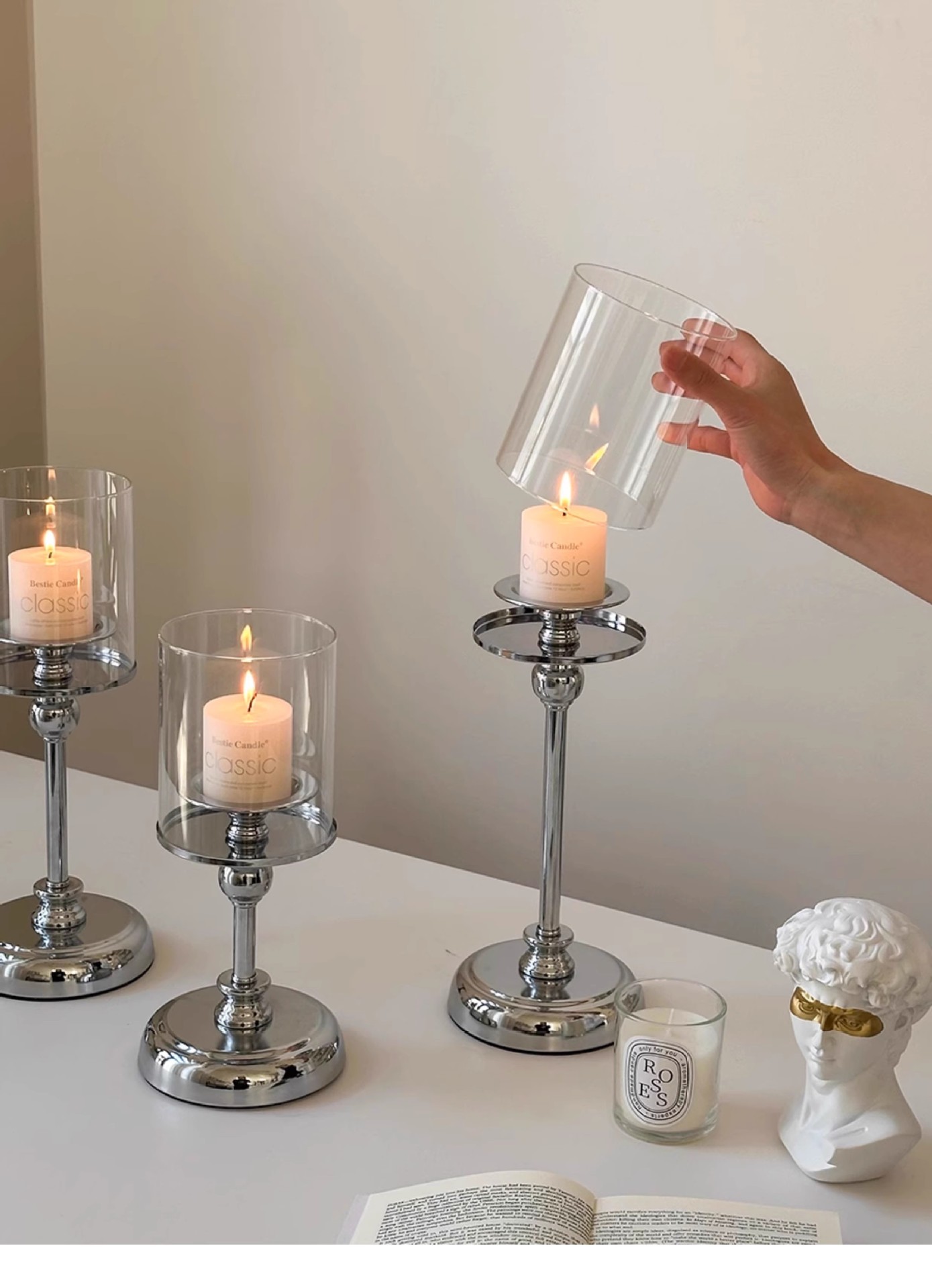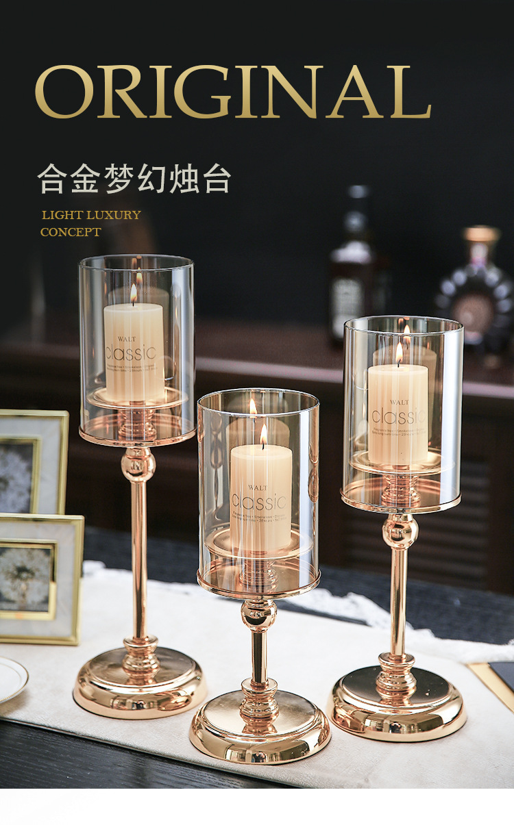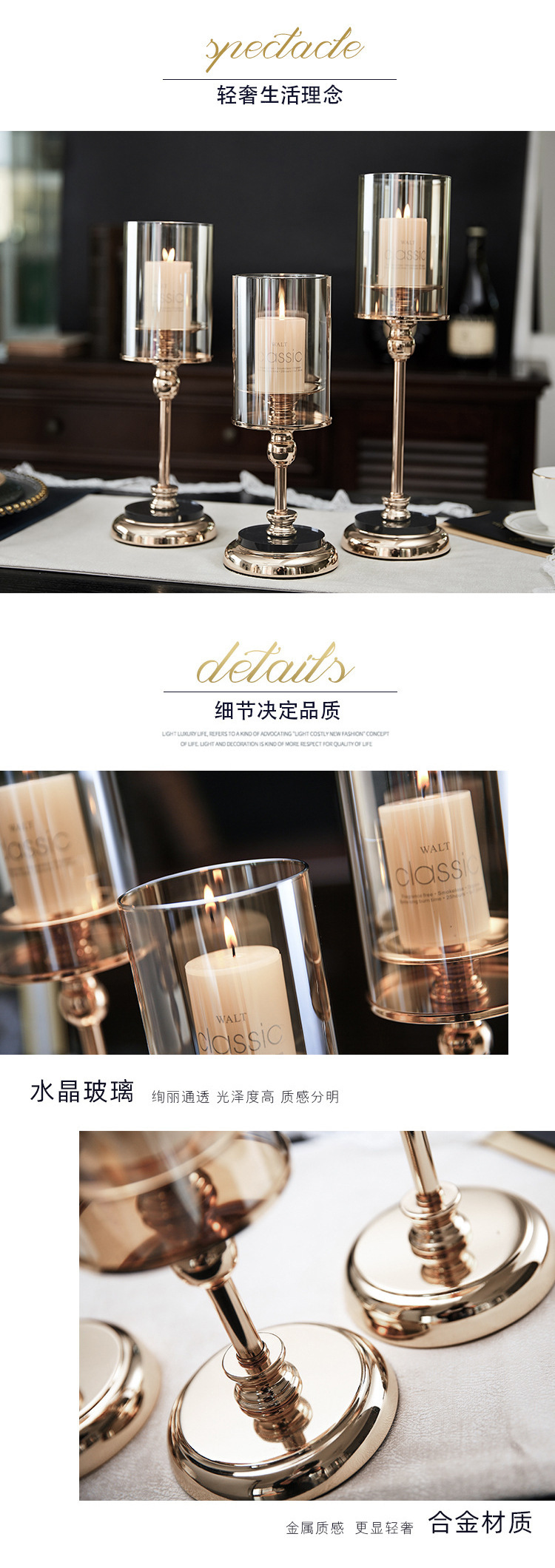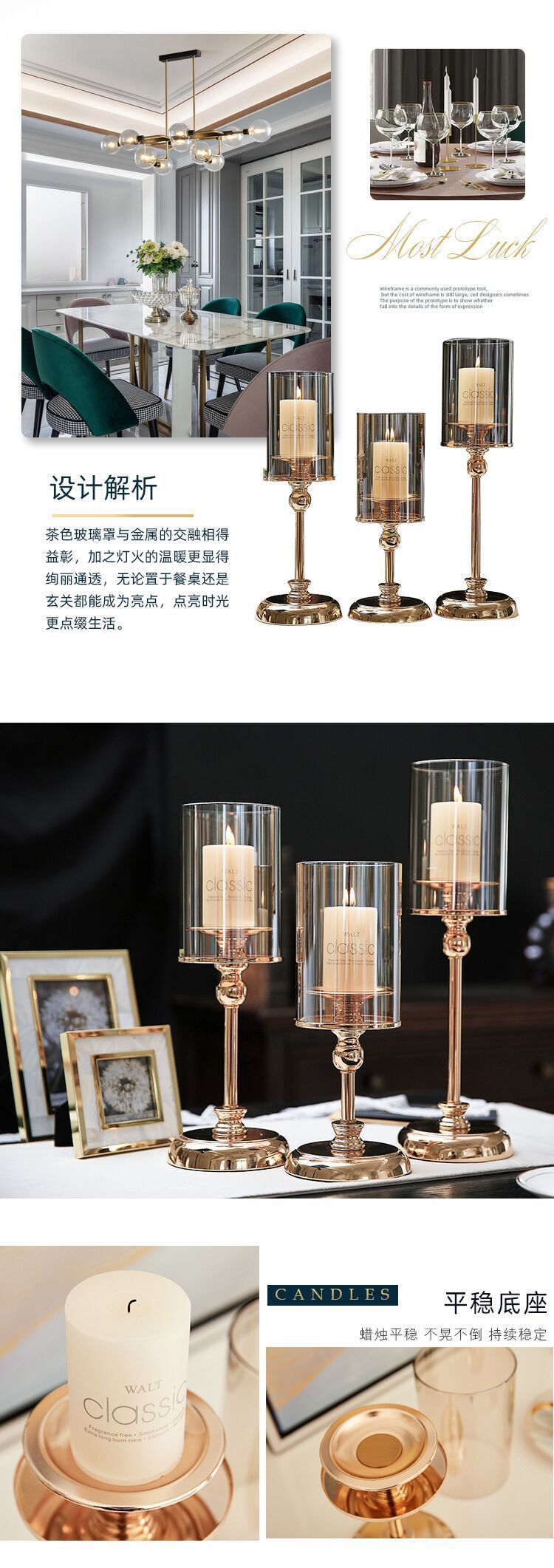 Lujo ligero europeo retro candelabro de vidrio de incienso decoración adornos de mesa de comedor a la luz de las velas accesorios románticos diseño de escena
