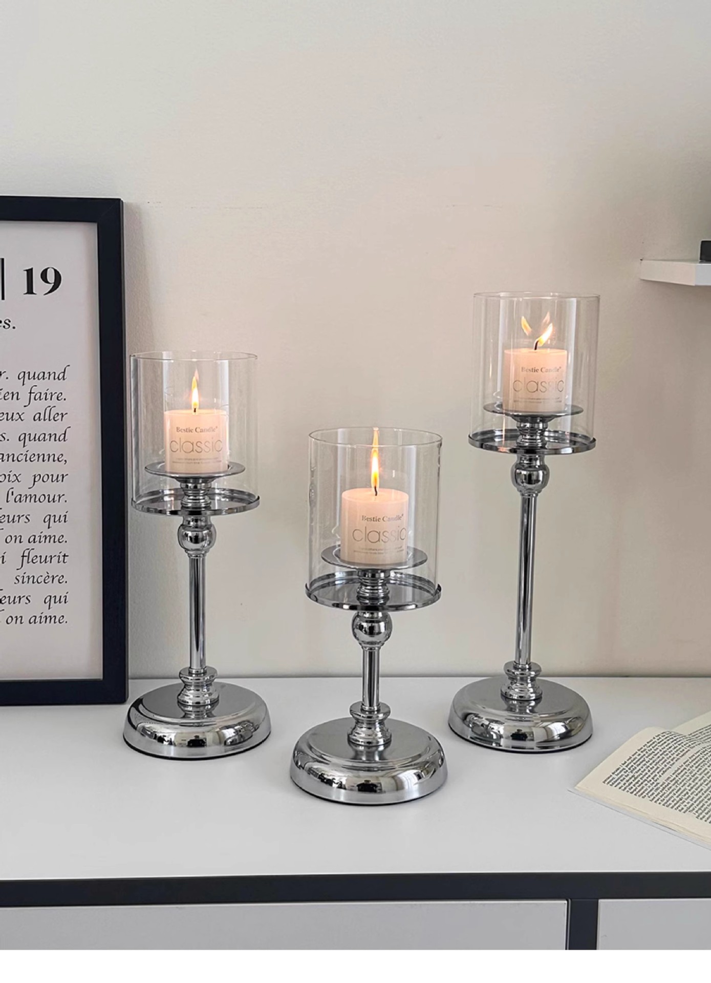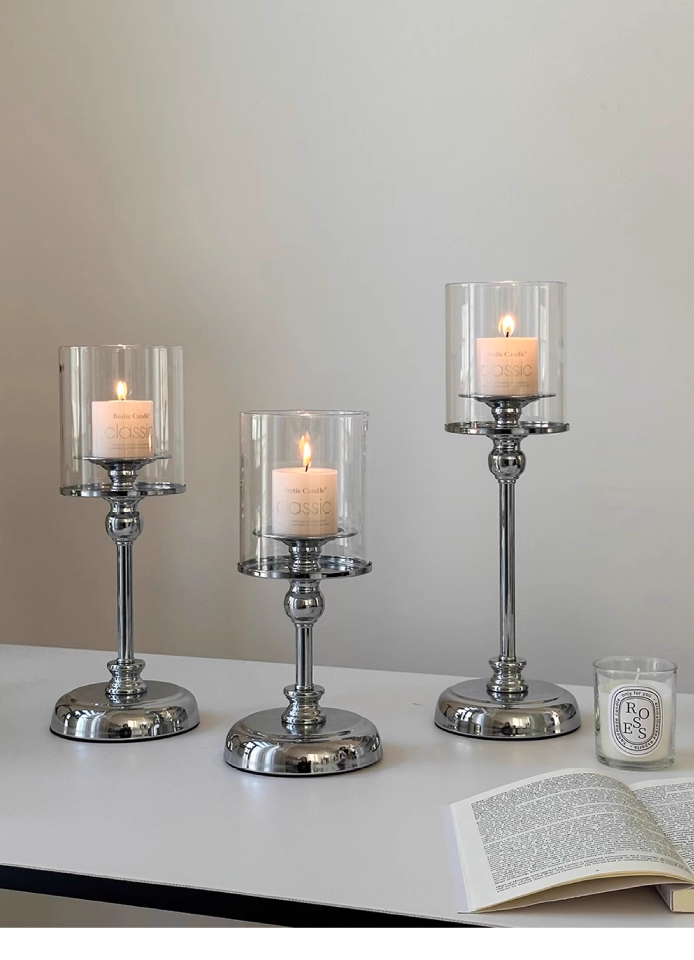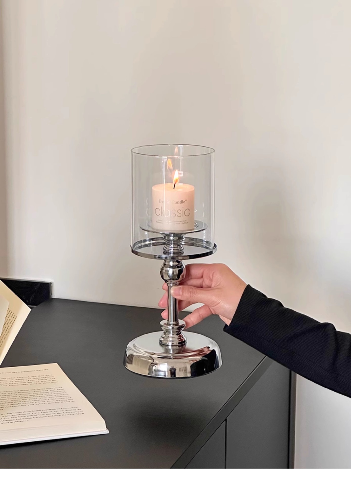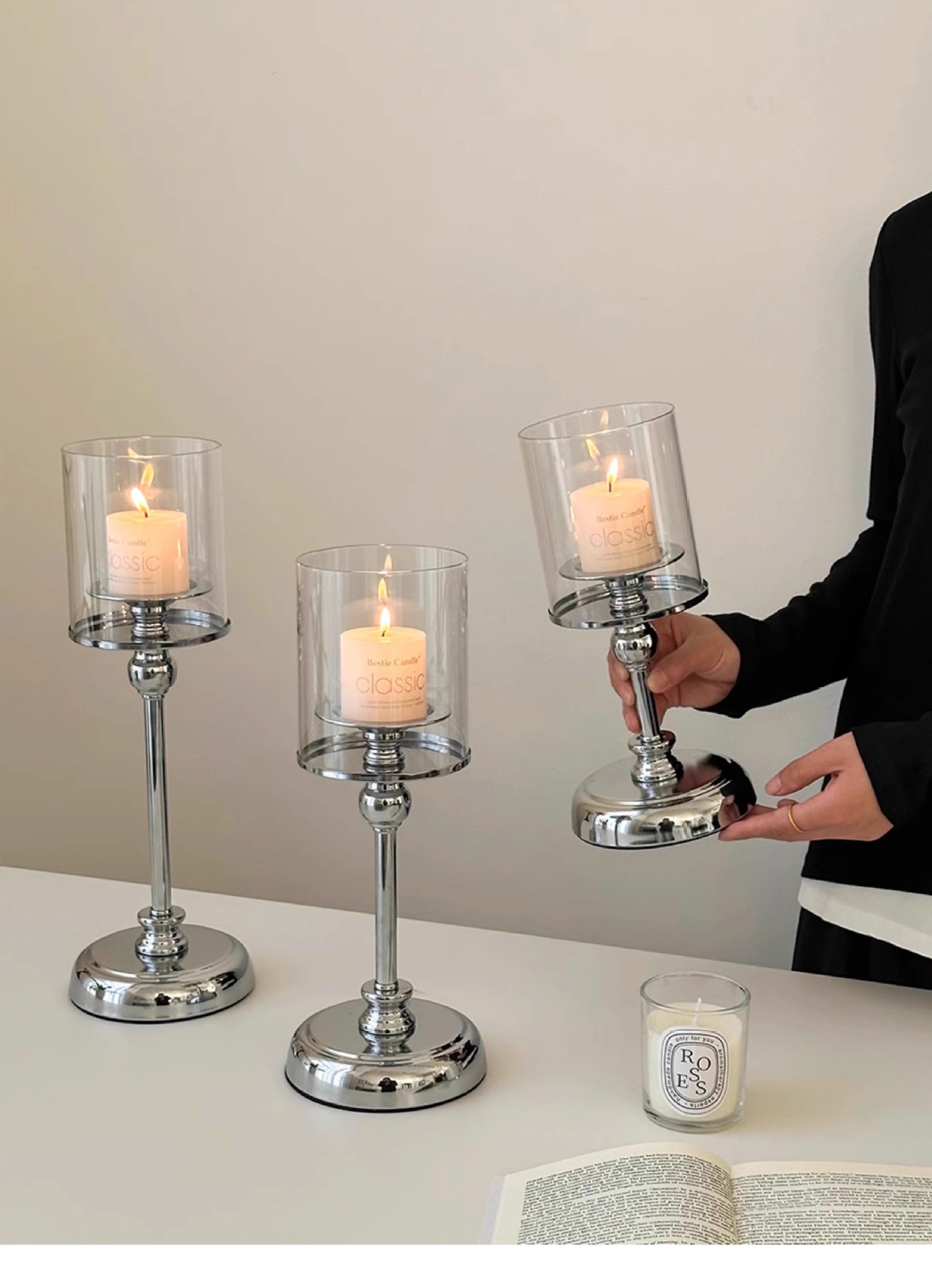 Lujo ligero europeo retro candelabro de vidrio de incienso decoración adornos de mesa de comedor a la luz de las velas accesorios románticos diseño de escena