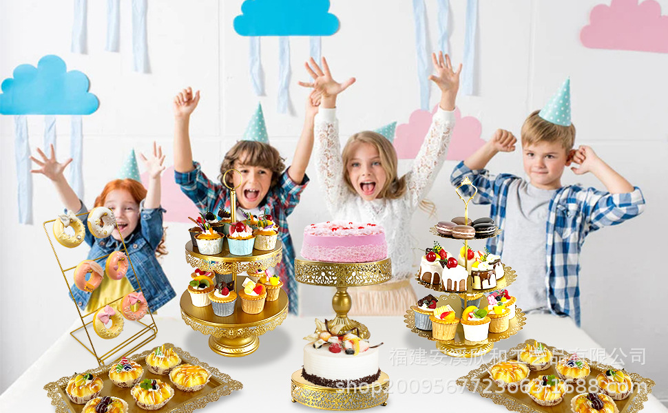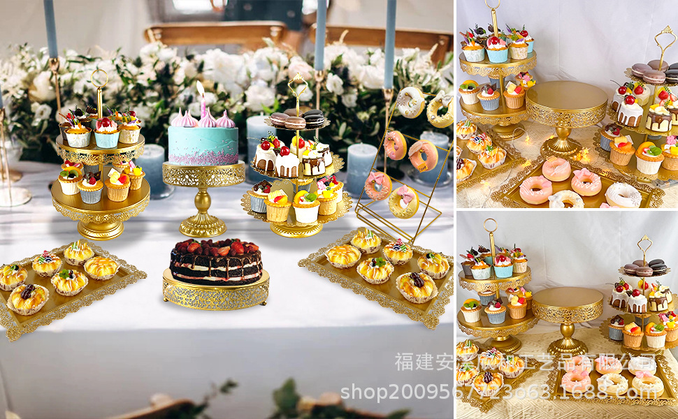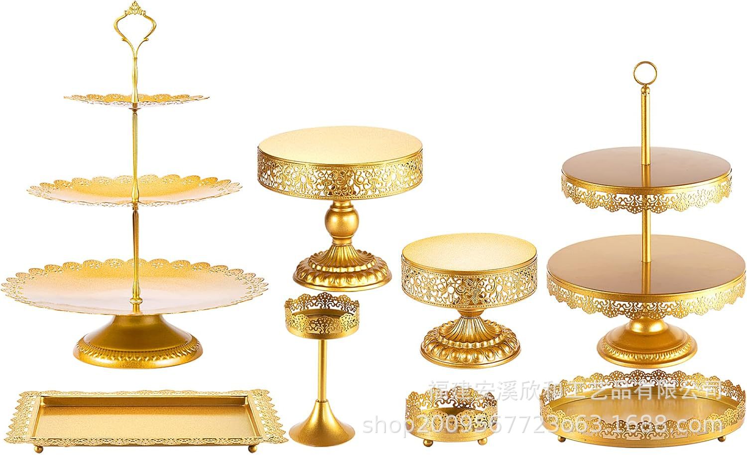 Dorado hierro forjado mesa de postres decorativa estante de exhibición bandeja de pastel de estilo europeo de la tarde refresco mesa de comida fría mesa de té