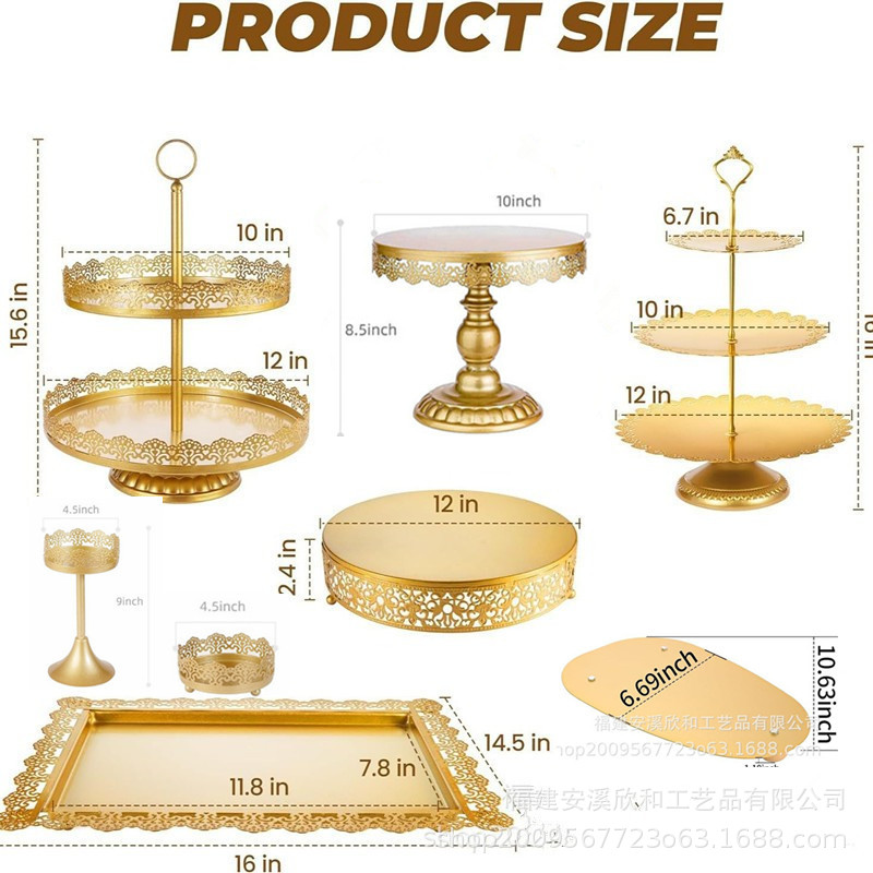 Estante de pastel de boda de hierro forjado, estante de exhibición de pastel de escuela secundaria baja, mesa de postres de boda, bandeja de pastel de props, conjunto de estante de pastel