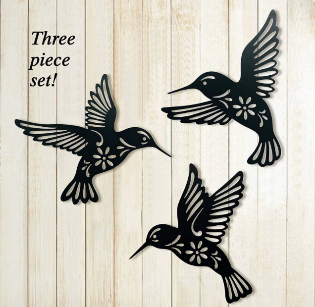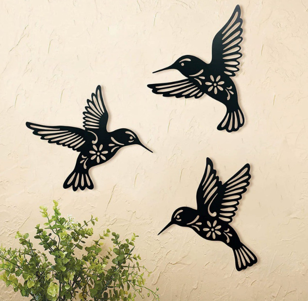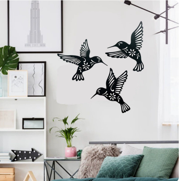 Transfronterizo para tres colibríes silueta artesanías de hierro forjado decoración colgante de pared artesanías de metal creativas para el hogar