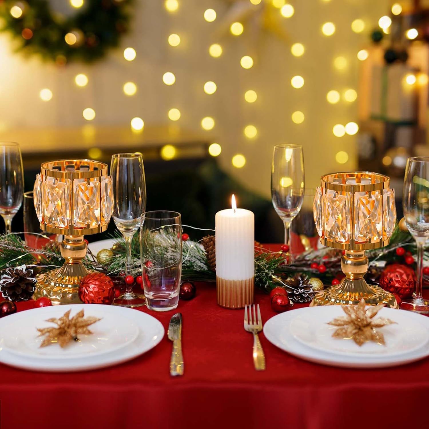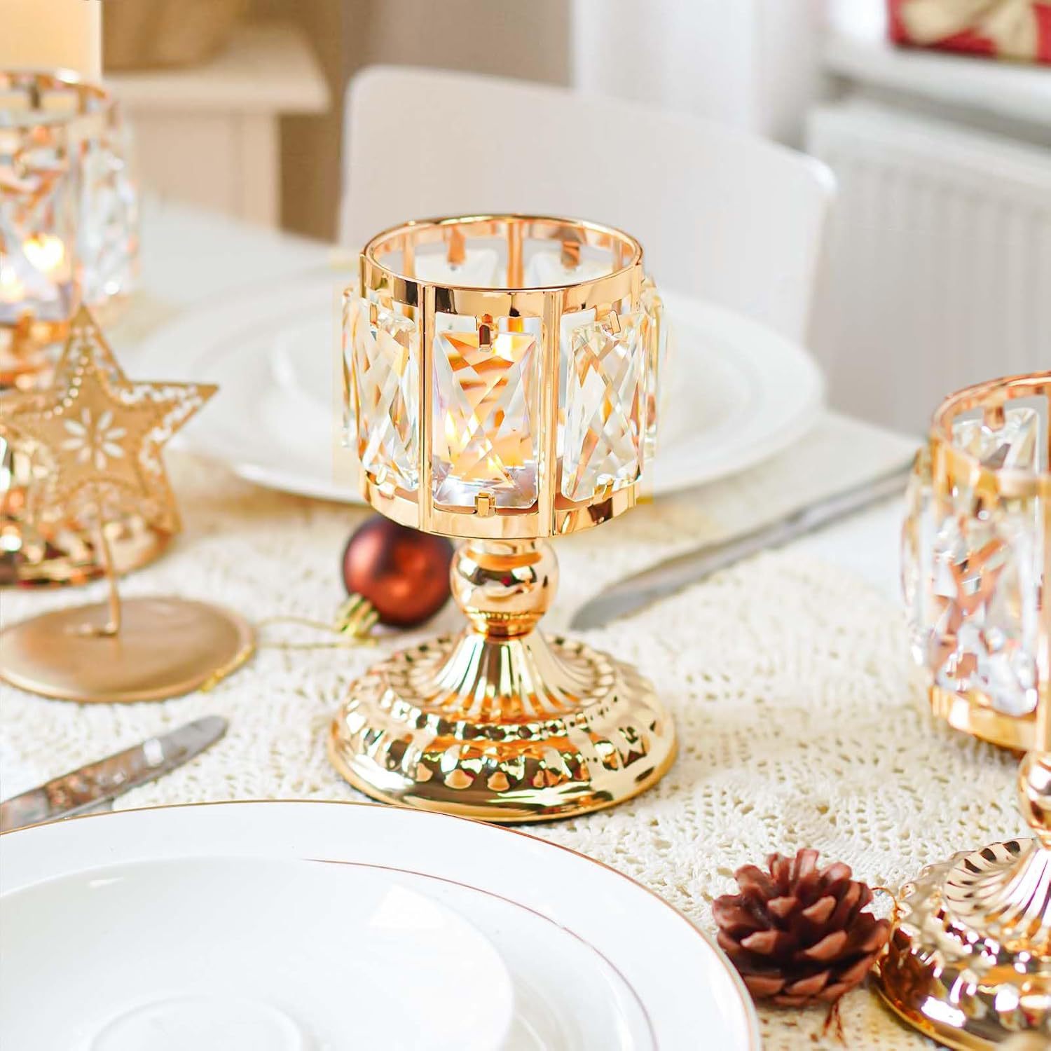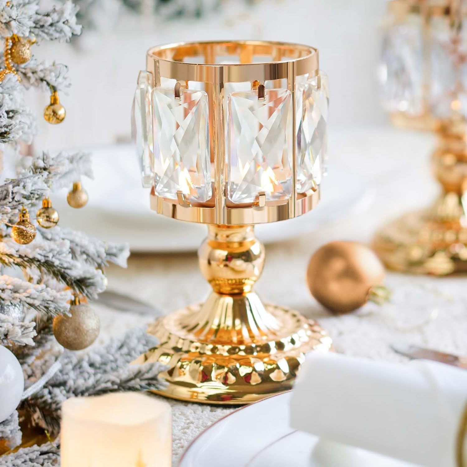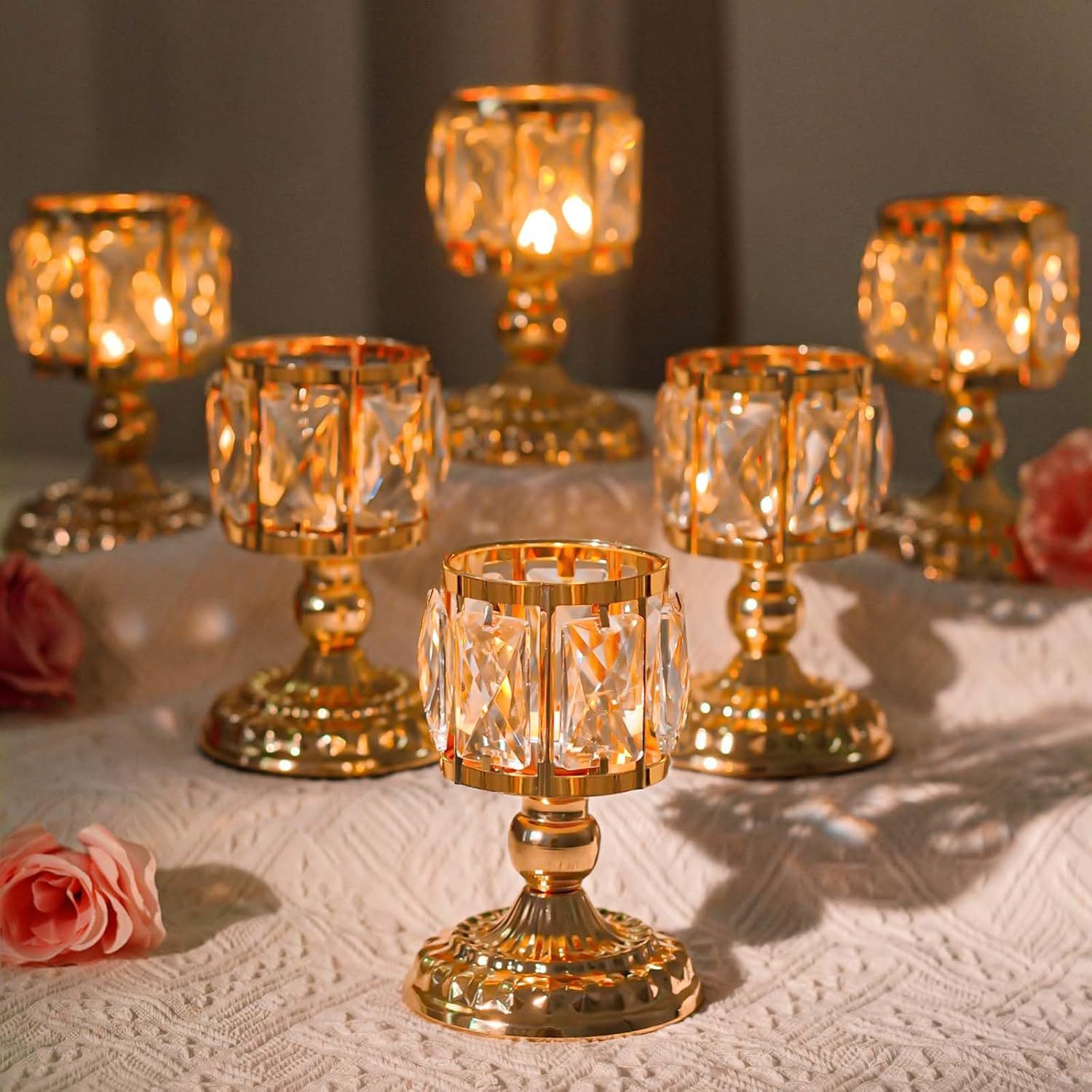 Comercio exterior transfronterizo de estilo europeo al por mayor candelabro de cristal hotel luz de vela dorada cena decoración del hogar candelabro artesanal