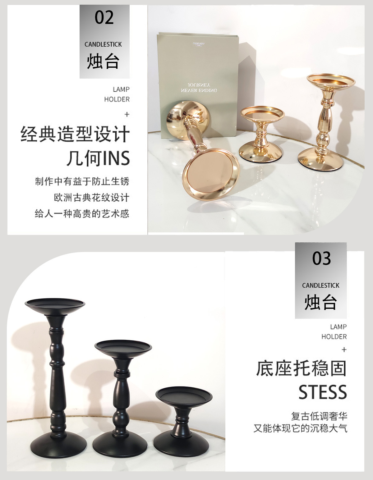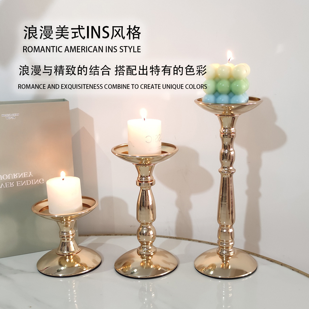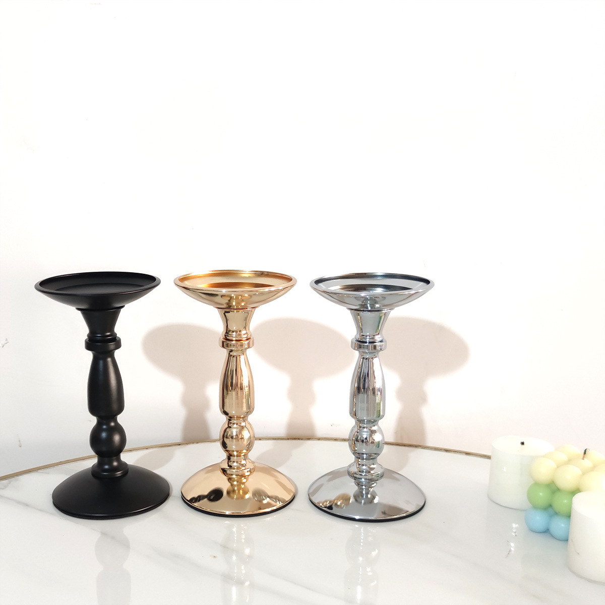 Fabricante directo ins retro americano candelabro de hierro forjado atmósfera decoración de mesa de comedor adornos columna romana candelabro asiento