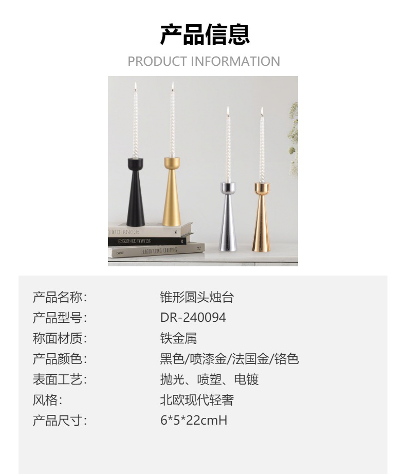 Candelabro de una sola cabeza de arte de hierro europeo transfronterizo Candelabro de una sola cabeza cónica Candelabro creativo Candelabro Decoración de la cena a la luz de las velas