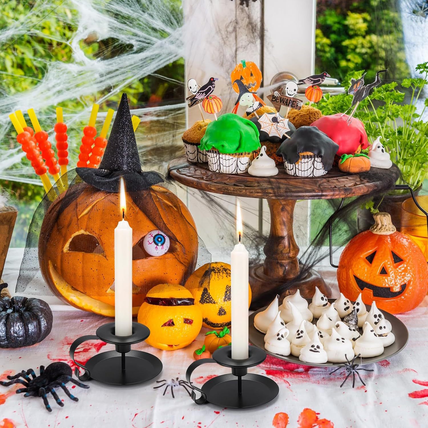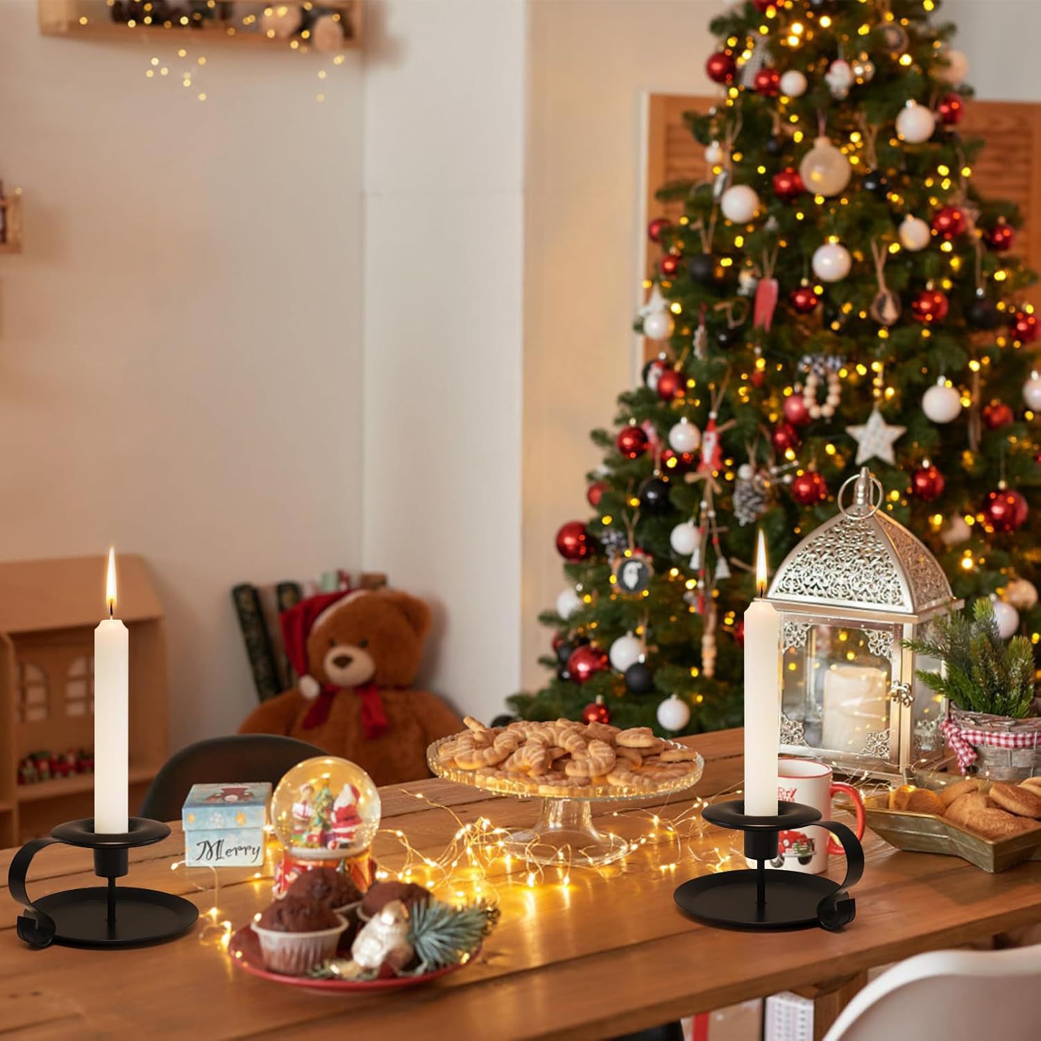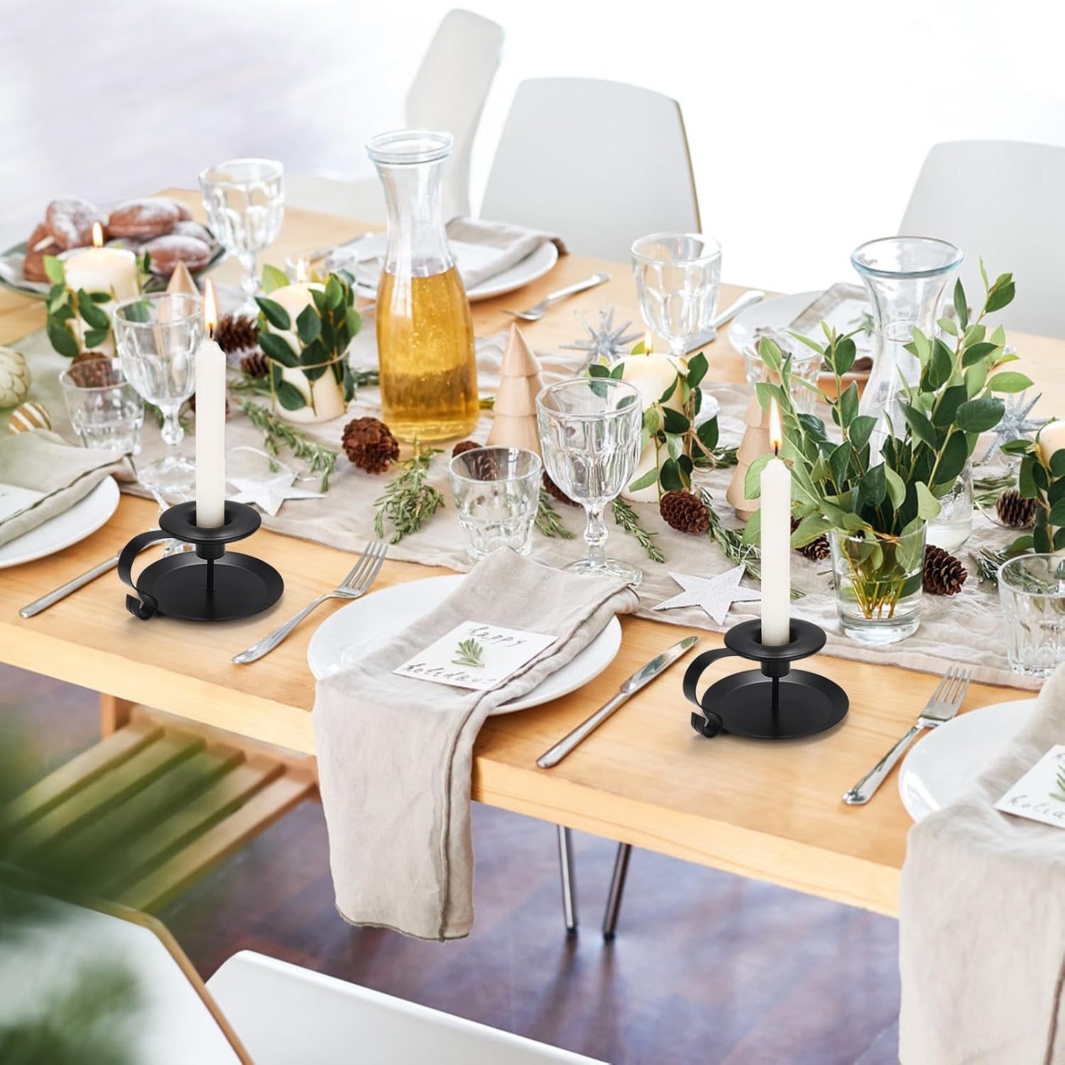 Candelabro de Hierro Forjado Negro Vintage, Estilo Americano, Decoración Metálica para Mesa de Comedor, Adorno para el Hogar, Portavelas Artesanal para Mesa