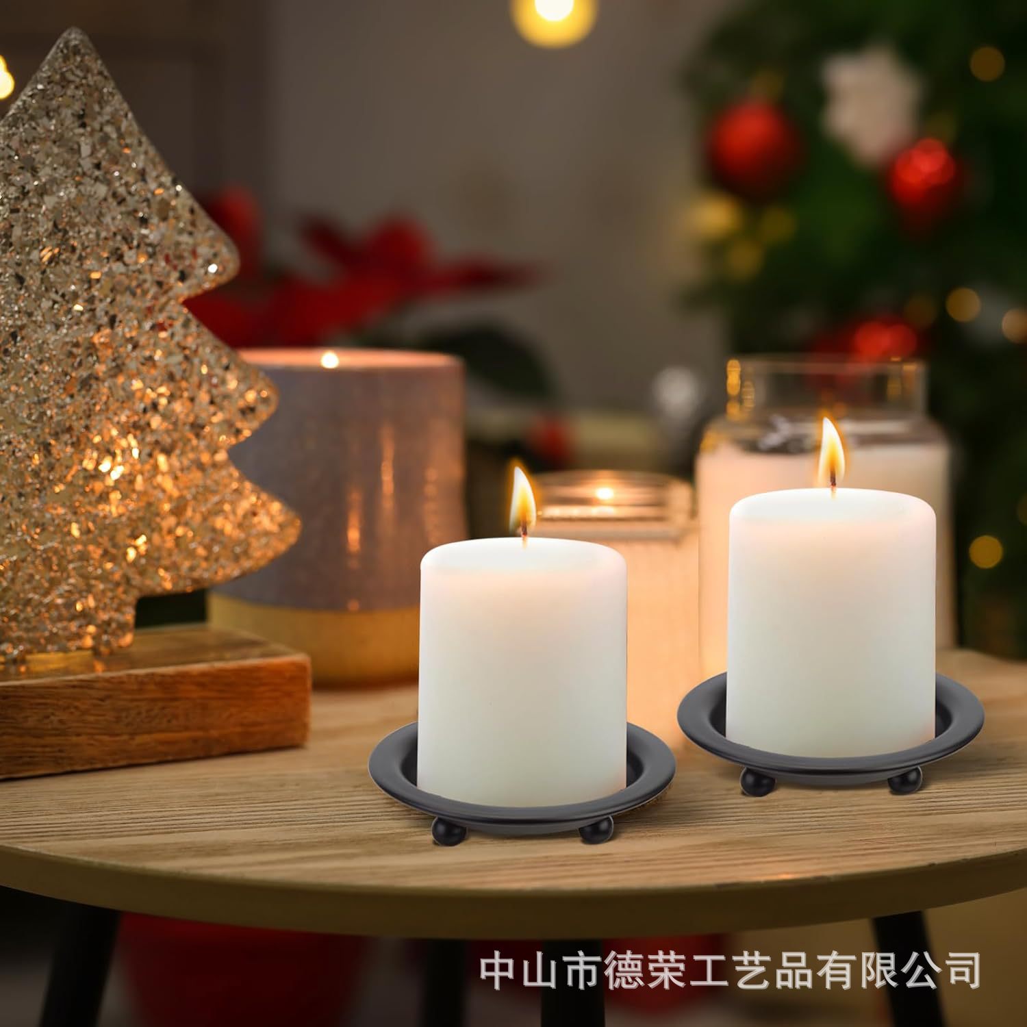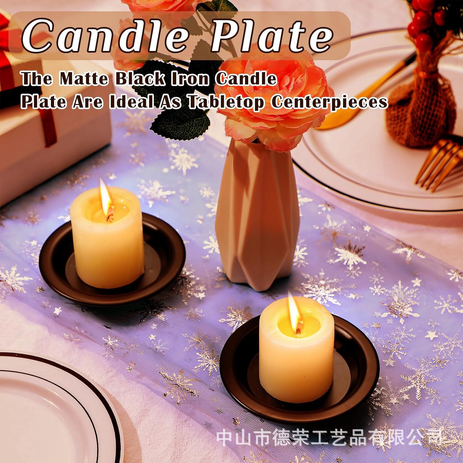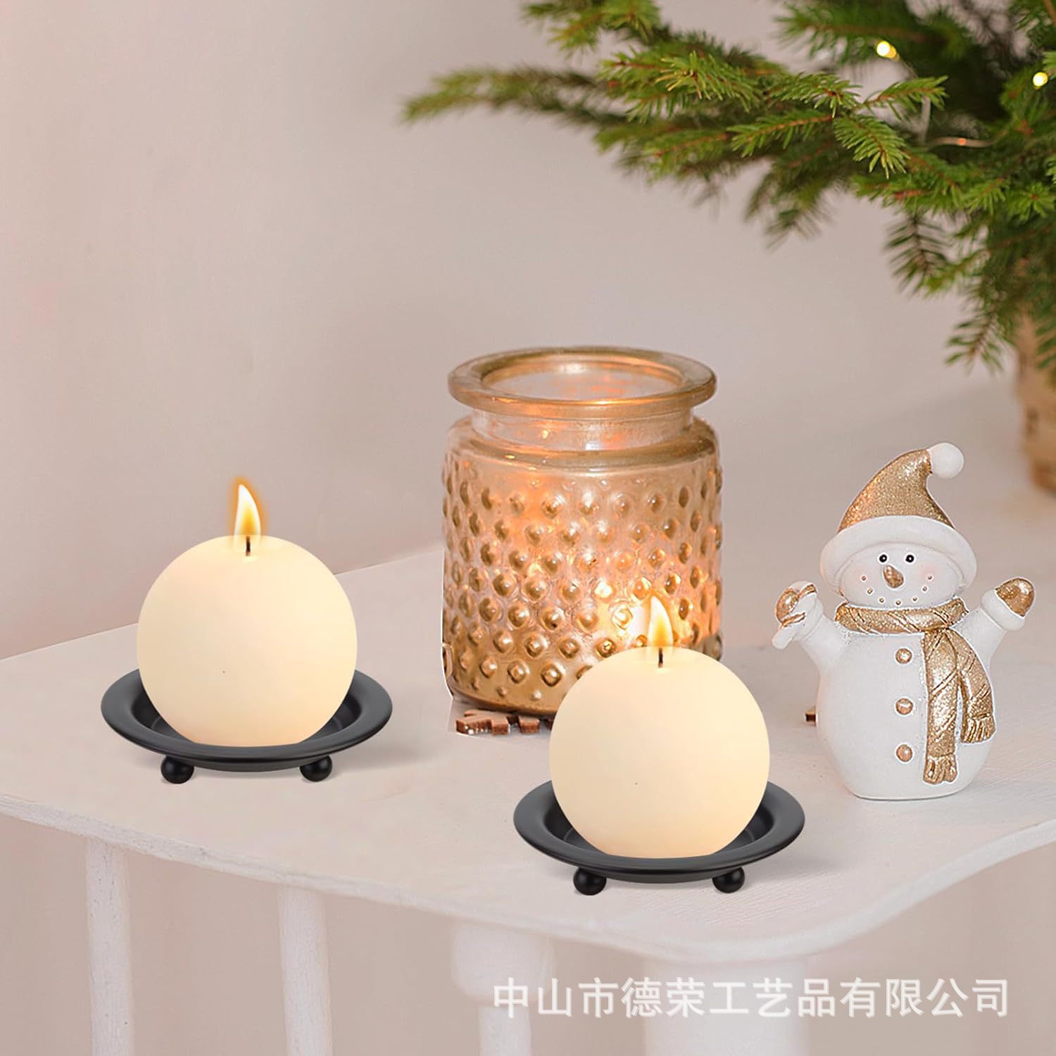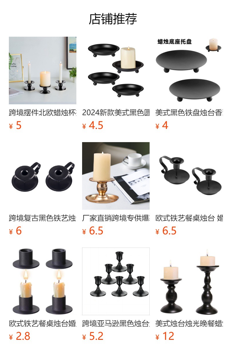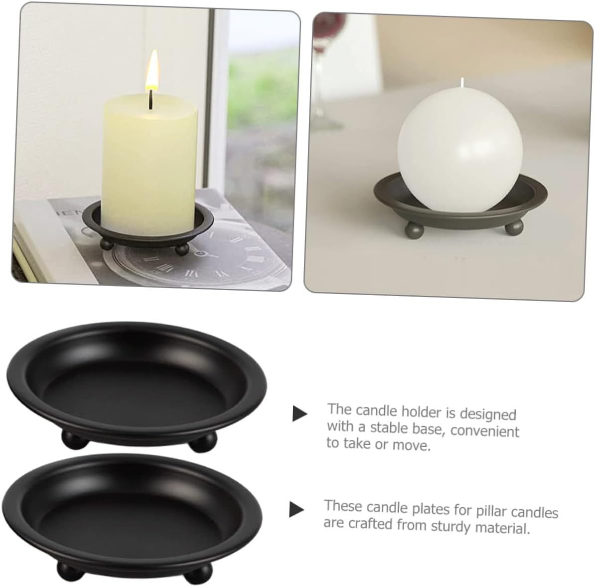 2024 nuevo estilo americano negro redondo bandeja de vela de bananas decoración del hogar candelabro pequeño bandeja de vela de hierro forjado
