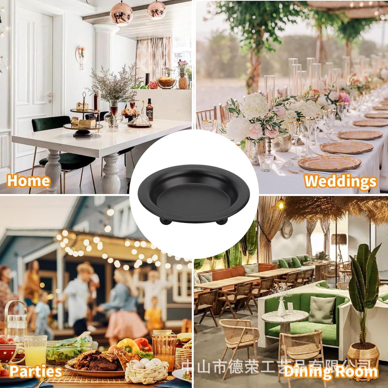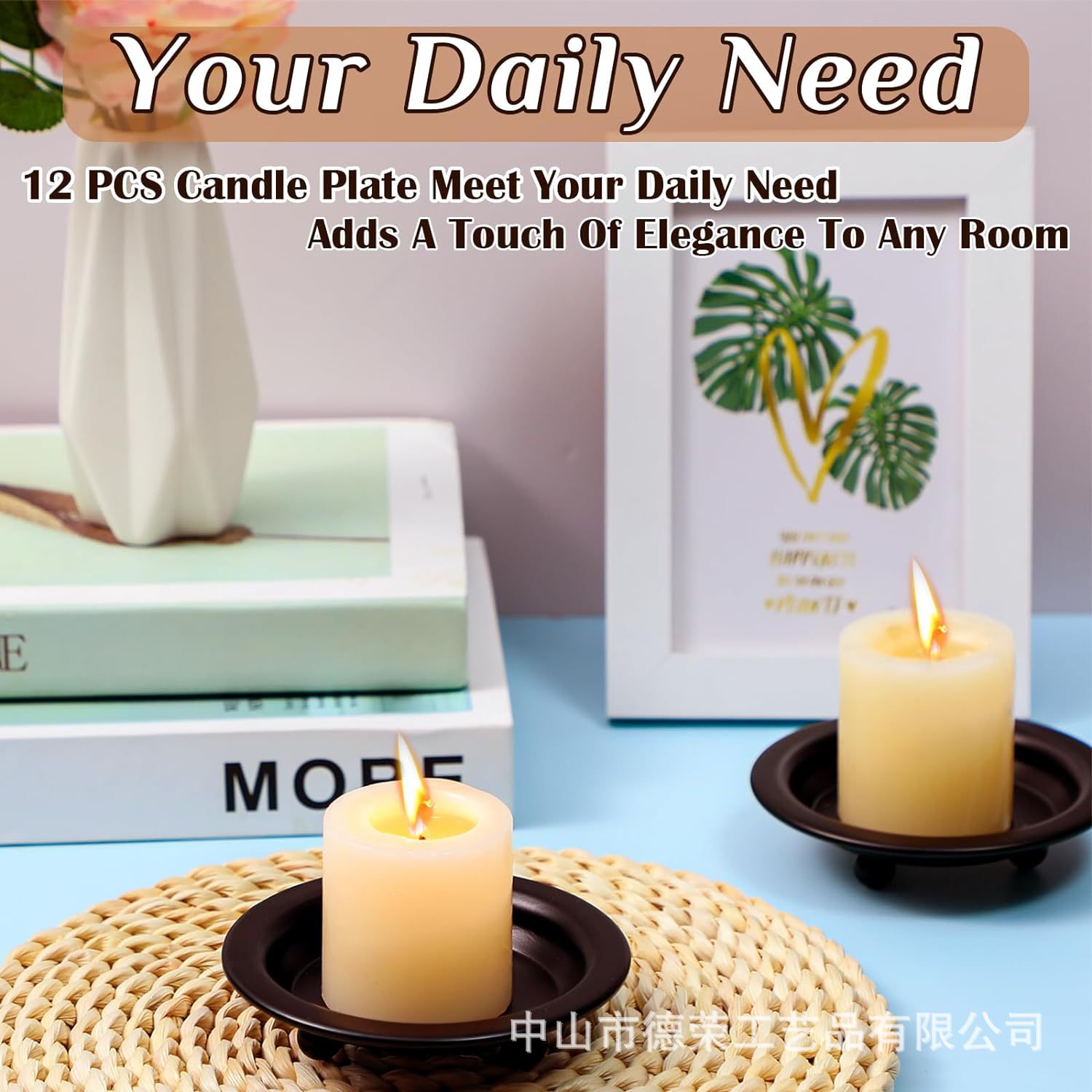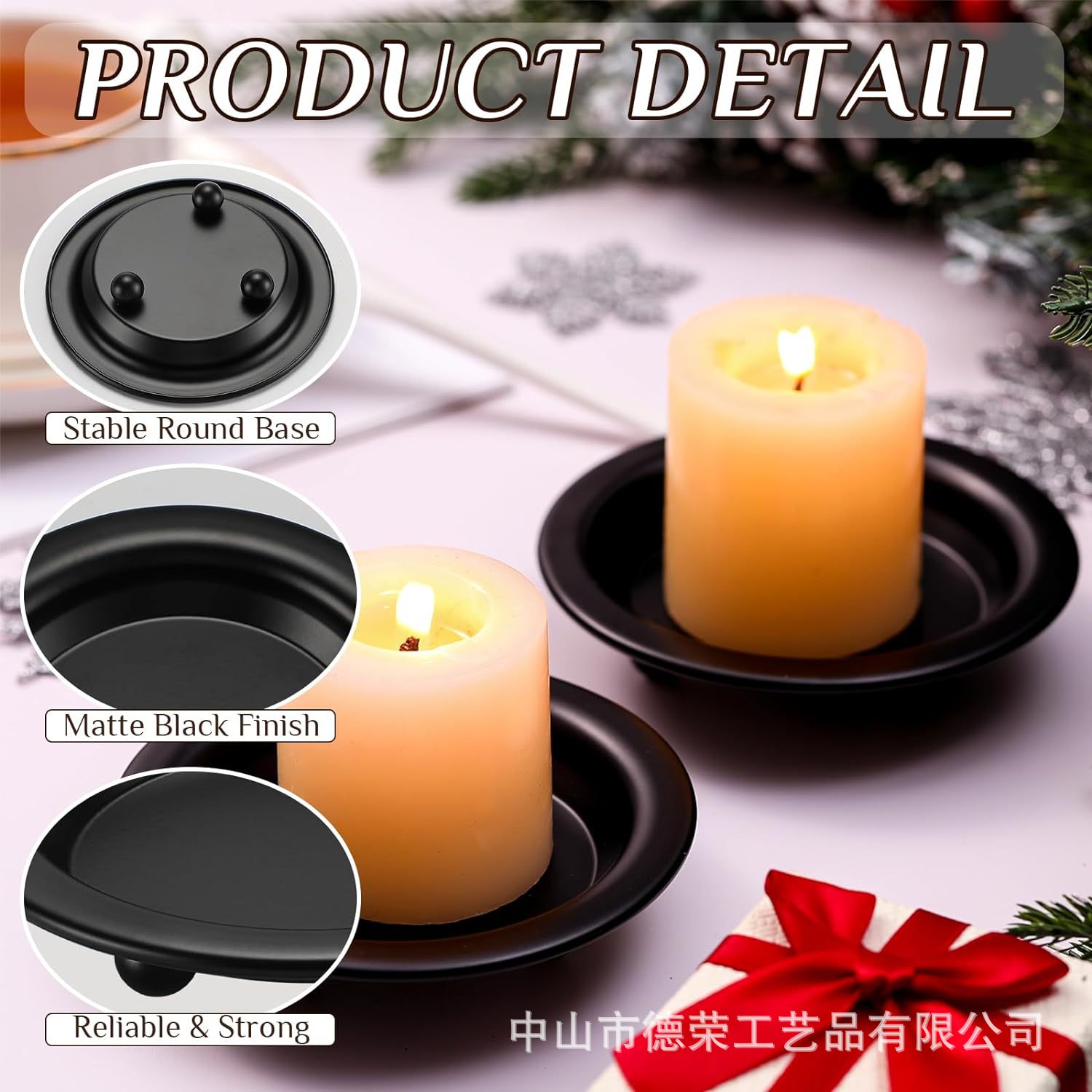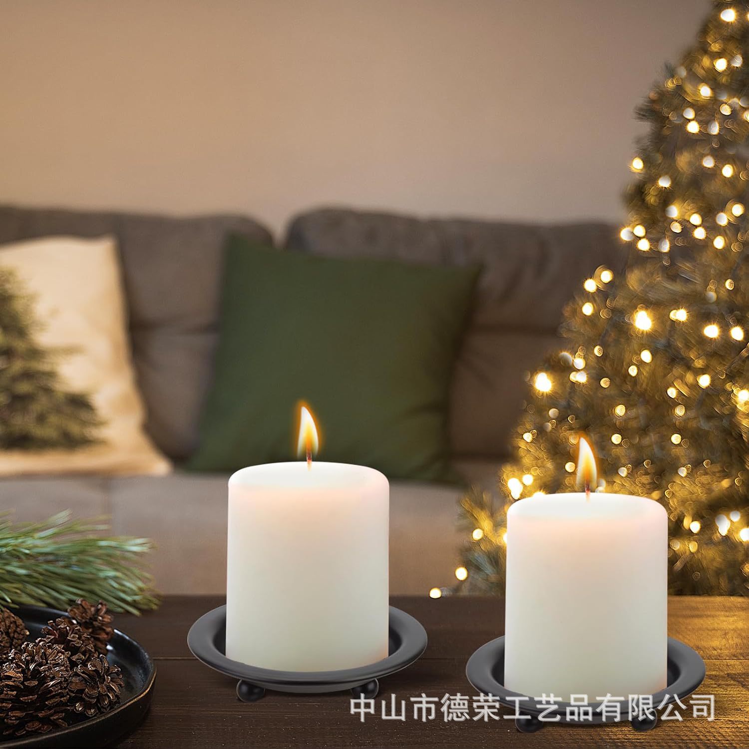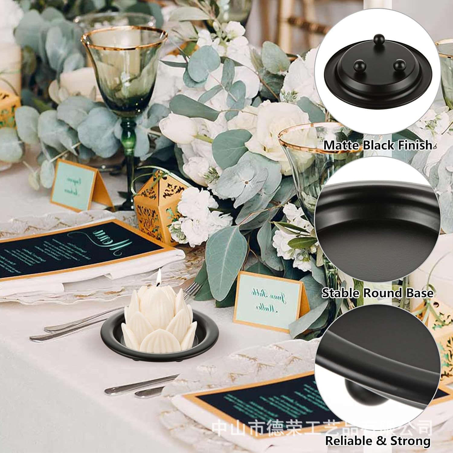 2024 nuevo estilo americano negro redondo bandeja de vela de bananas decoración del hogar candelabro pequeño bandeja de vela de hierro forjado