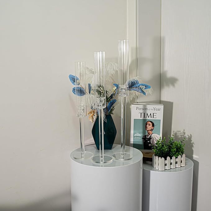 Nuevo candelabro acrílico transparente de tres piezas de decoración de la ventana de la fiesta de bodas salón de bodas de la mesa principal del hotel