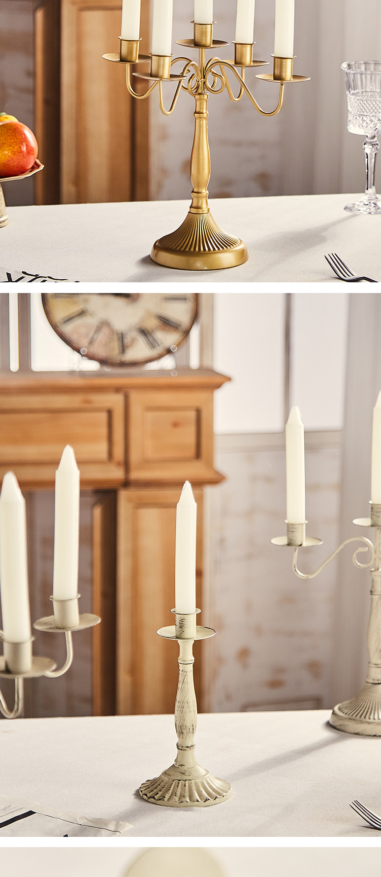 Decoración de candelabro de hierro forjado retro francés, banquete de cumpleaños, mesa de boda, cena romántica a la luz de las velas, accesorios de disparo