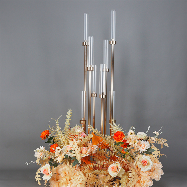 Nuevos accesorios de la boda suministro directo de fábrica de hierro galvanoplastia Festival de metal Candelabro plomo carretera decoración de la Mesa de la boda
