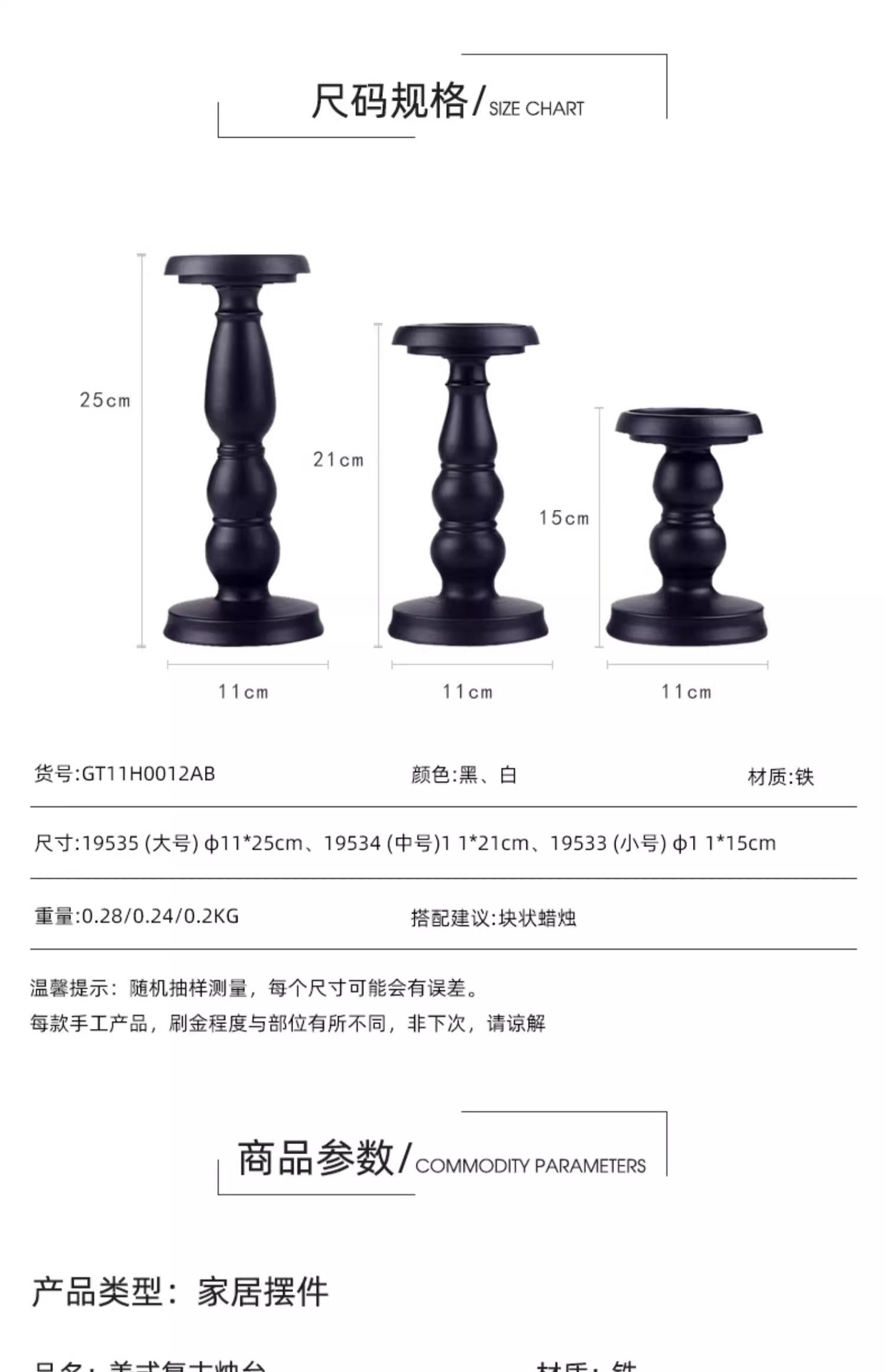 | Categoría de producto | Candelabros, vasijas de velas |