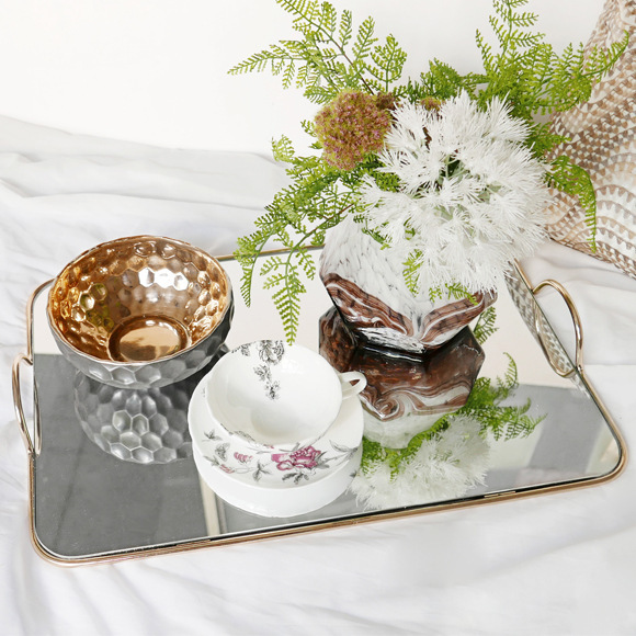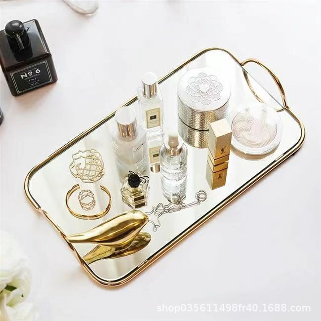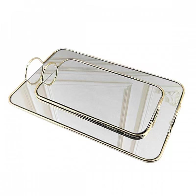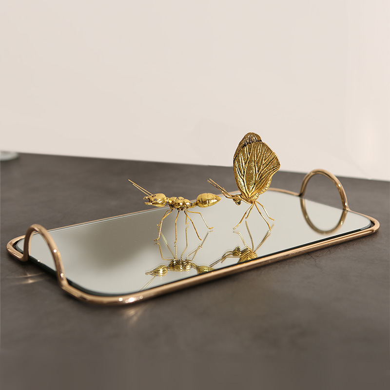 Paquete de oro nórdico bandeja de espejo doble ventana modelo de sala de venta mesa de comedor simple bandeja de metal