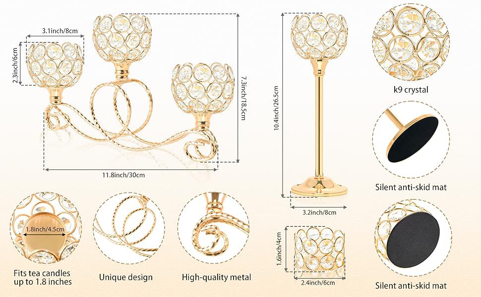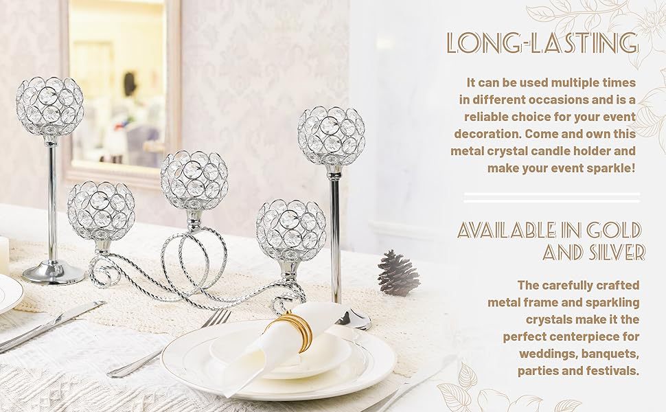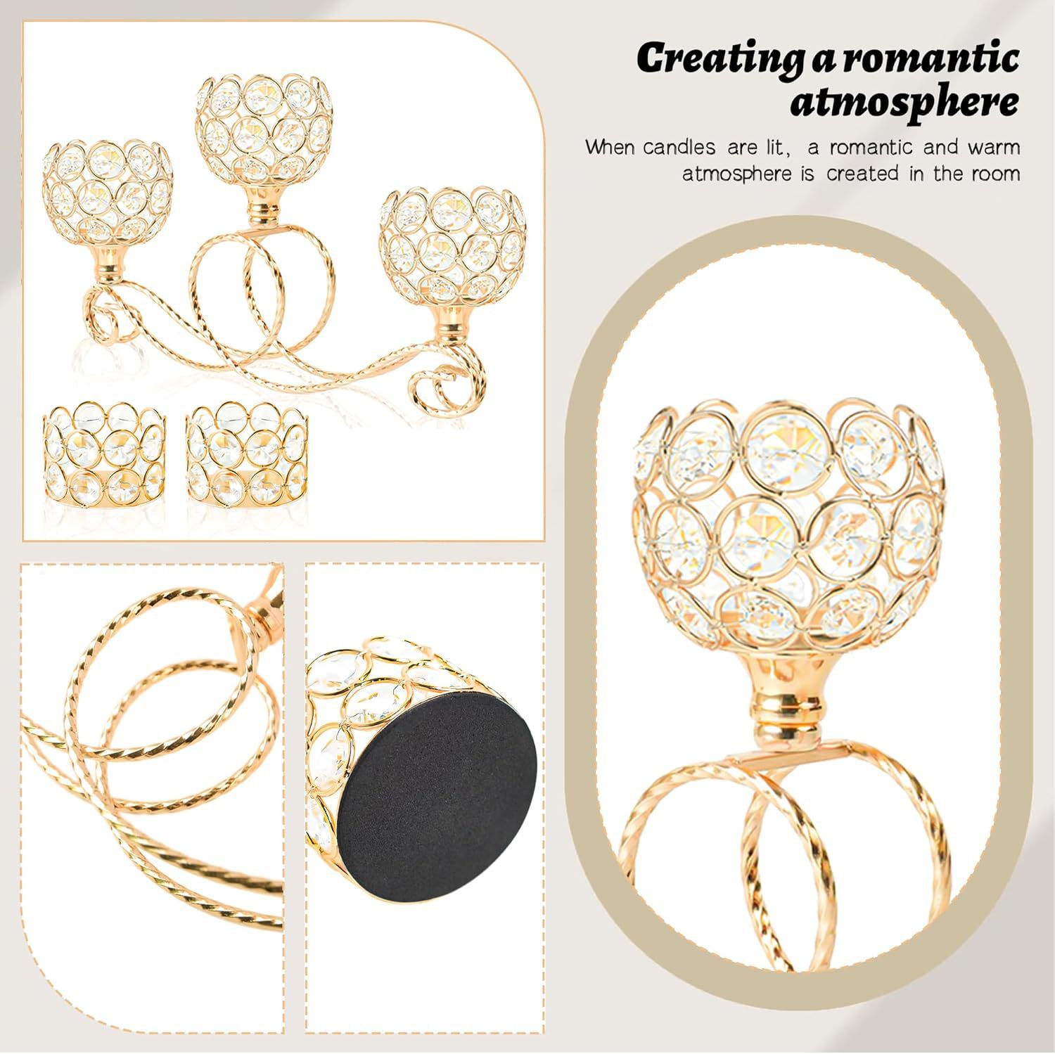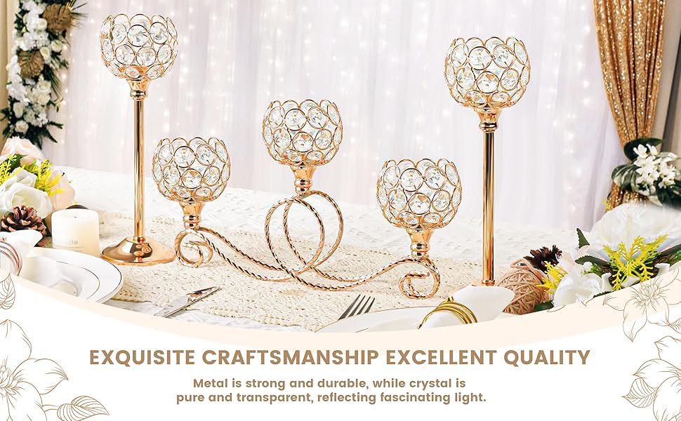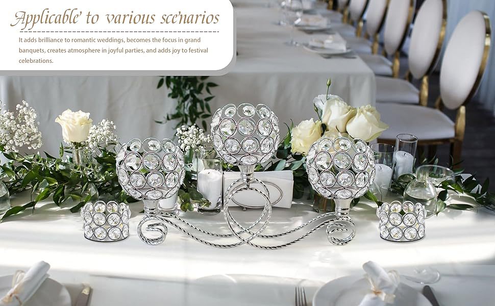 Amazon Metal chapado 3 cabezas 5 brazos combinación de té de cristal candelabro elegante mesa de boda centro decorativo candelabro
