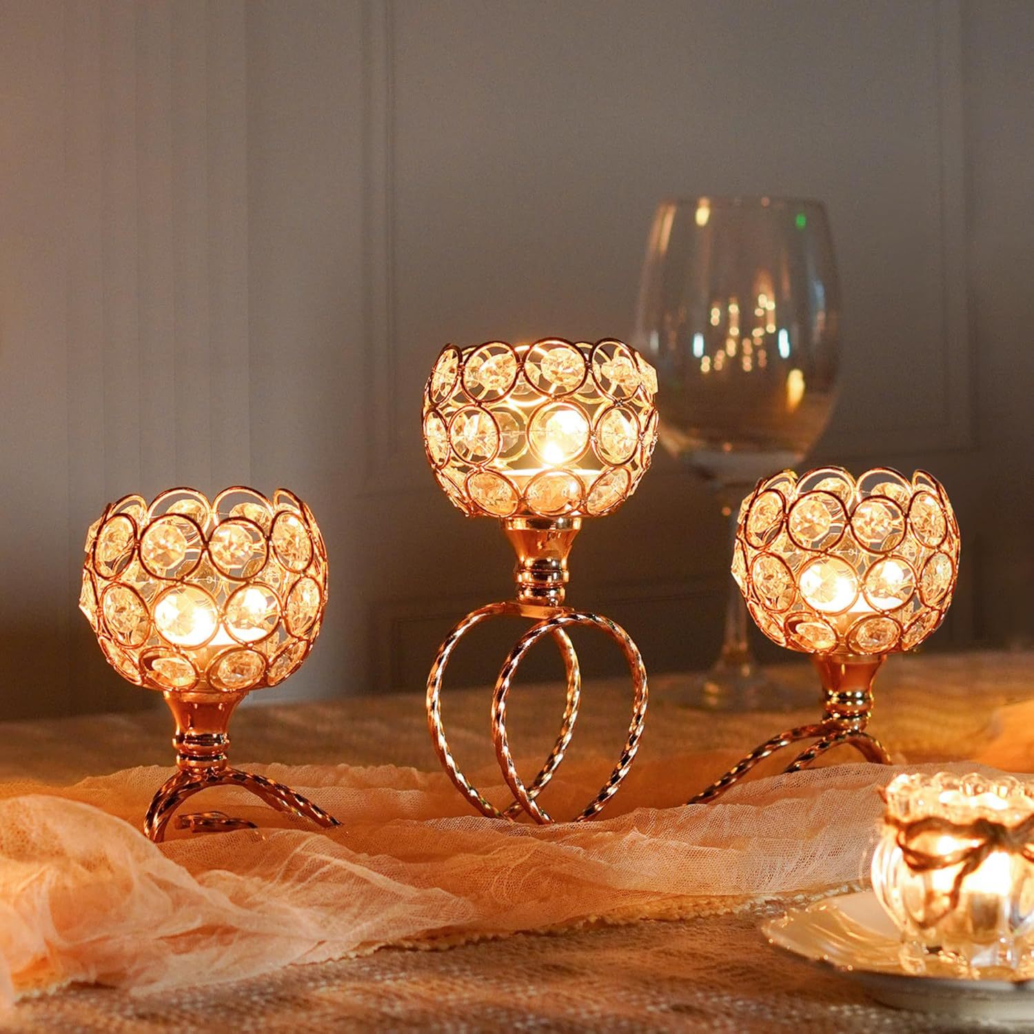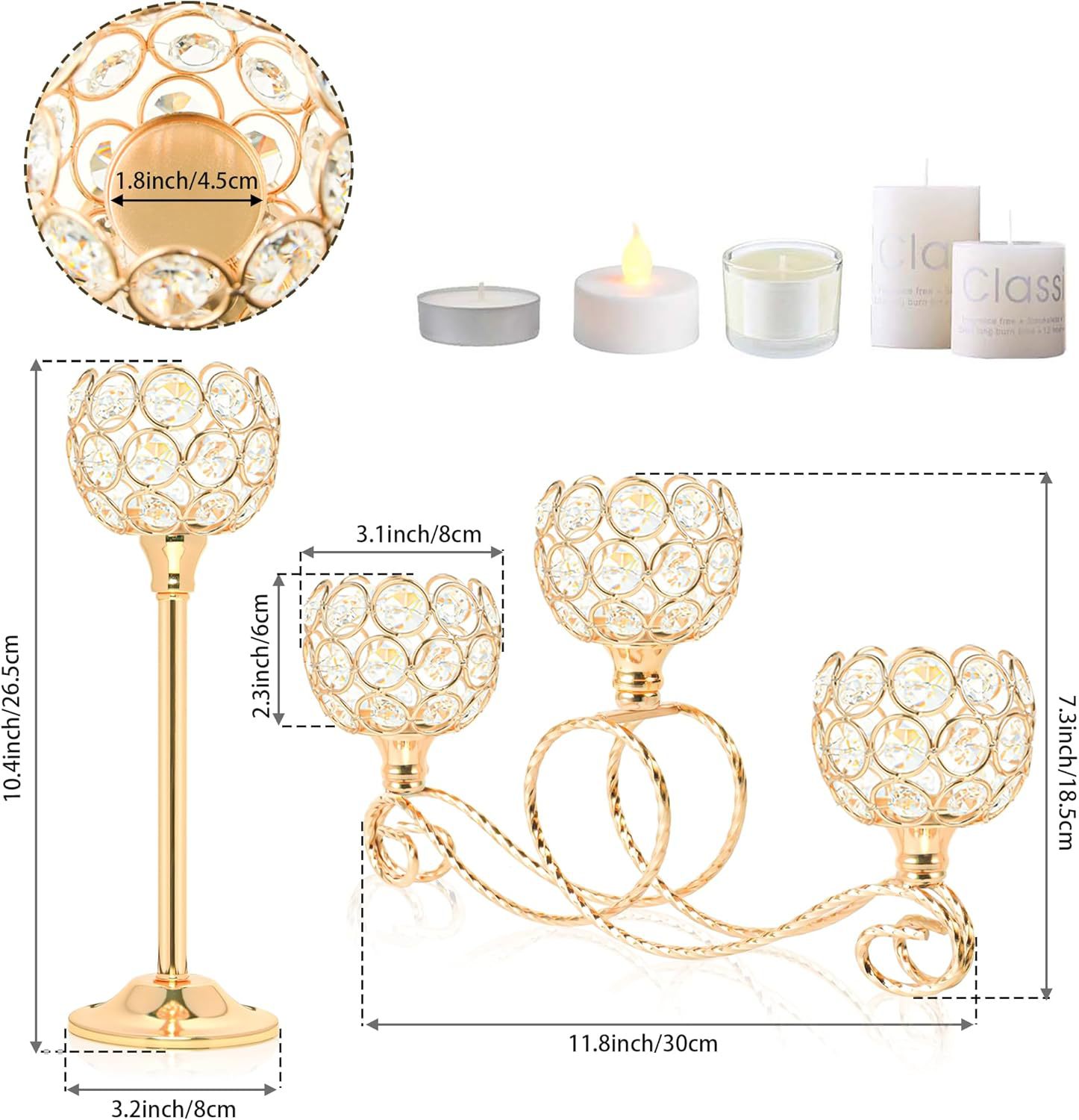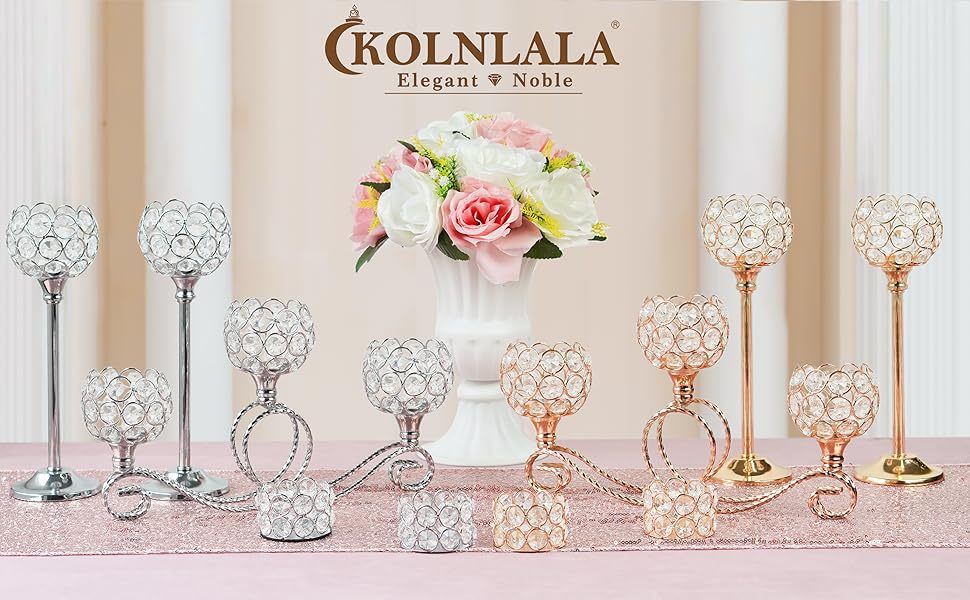 Amazon Metal chapado 3 cabezas 5 brazos combinación de té de cristal candelabro elegante mesa de boda centro decorativo candelabro