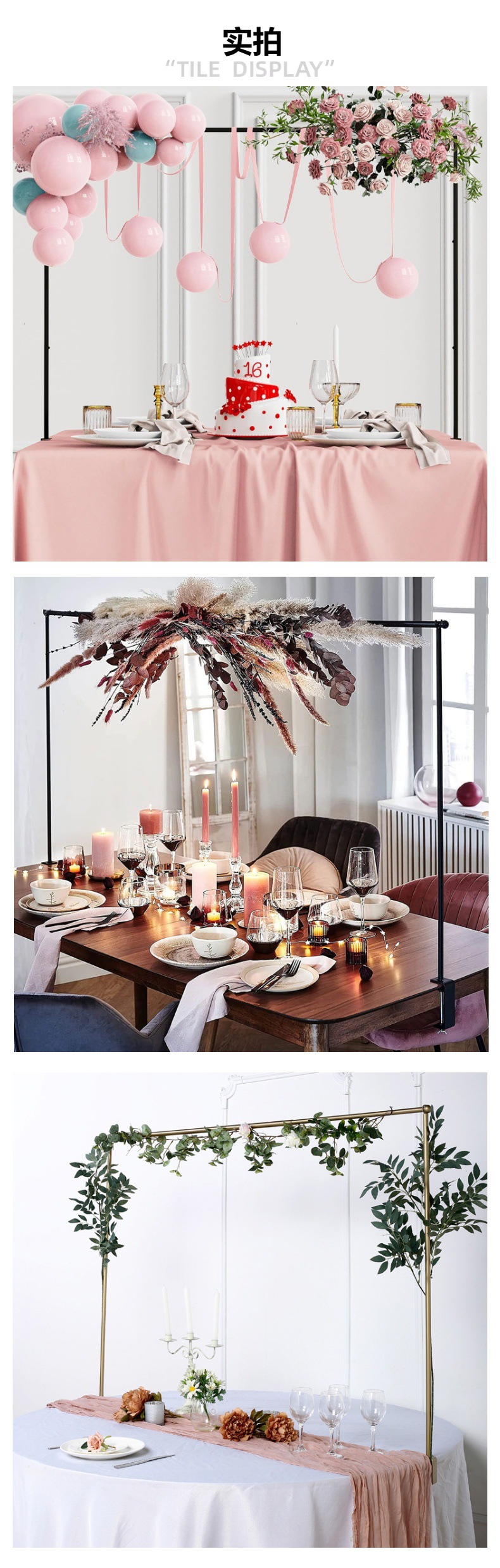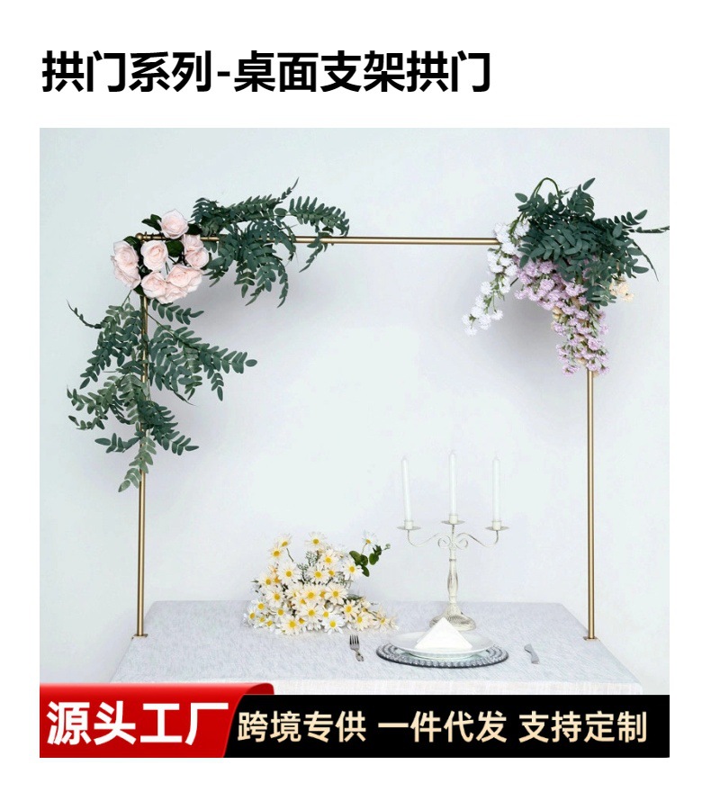 Mesa de boda transfronteriza arco dorado soporte de decoración de fiesta de cumpleaños estante de flores de decoración de mesa de banquete de boda postes de mesa
