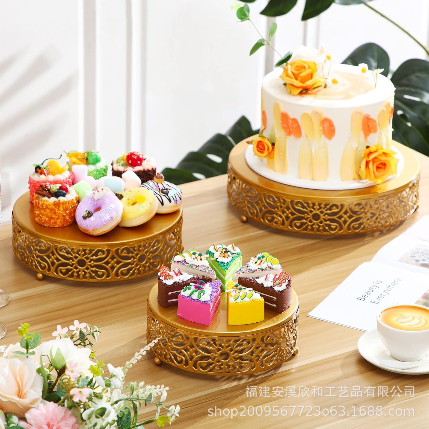 Bodas europeas creativas doradas dulces bandeja de hierro forjado plato de pastel de una sola capa estante de pastel bandeja de frutas platos de bocadillos