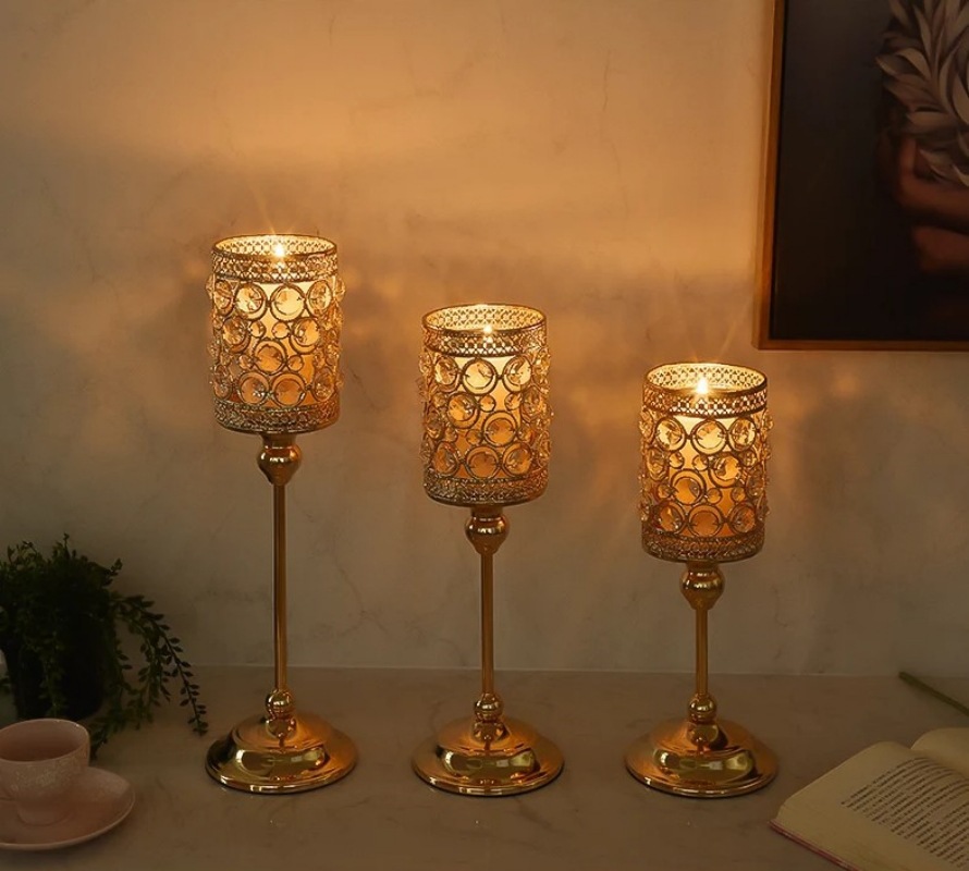 Mesa de comedor europea lujo ligero candelabros escandinavos románticos americanos candelabros de cristal oro decoración francesa ornamentos