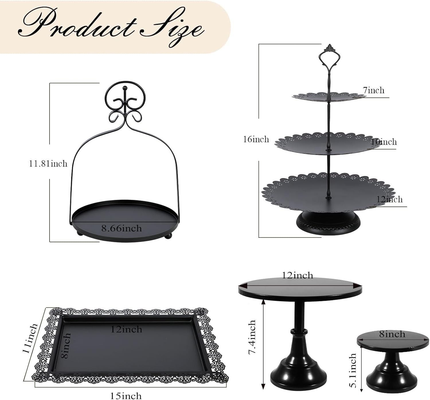 | Color | Set de 7 piezas Negro Set de 7 piezas Dorado |