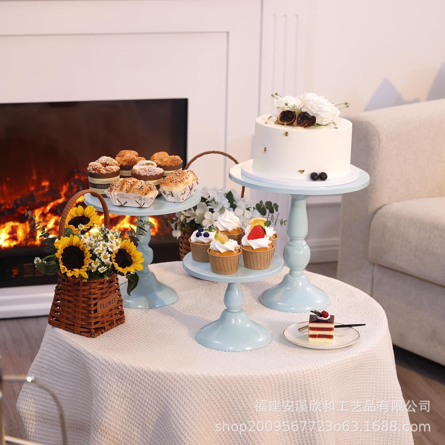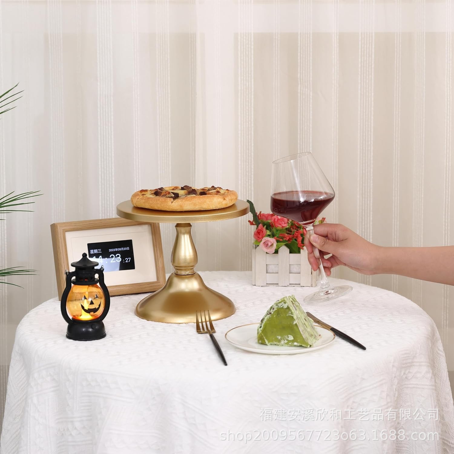 Fijación de pastel de hierro forjado de oro / bandeja de pastel de tres piezas / bandeja de frutas / bandeja de bodas de West Point