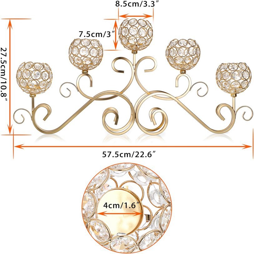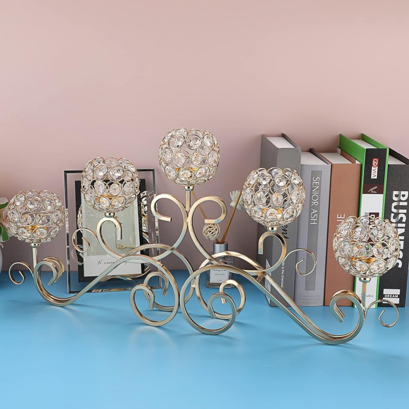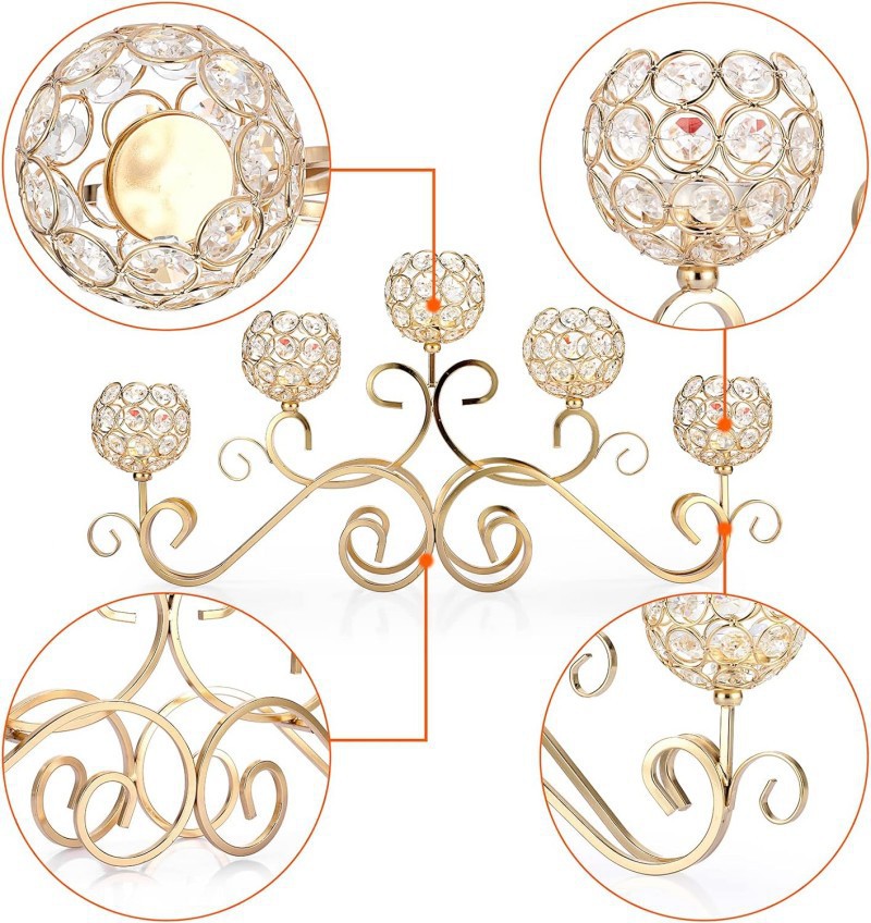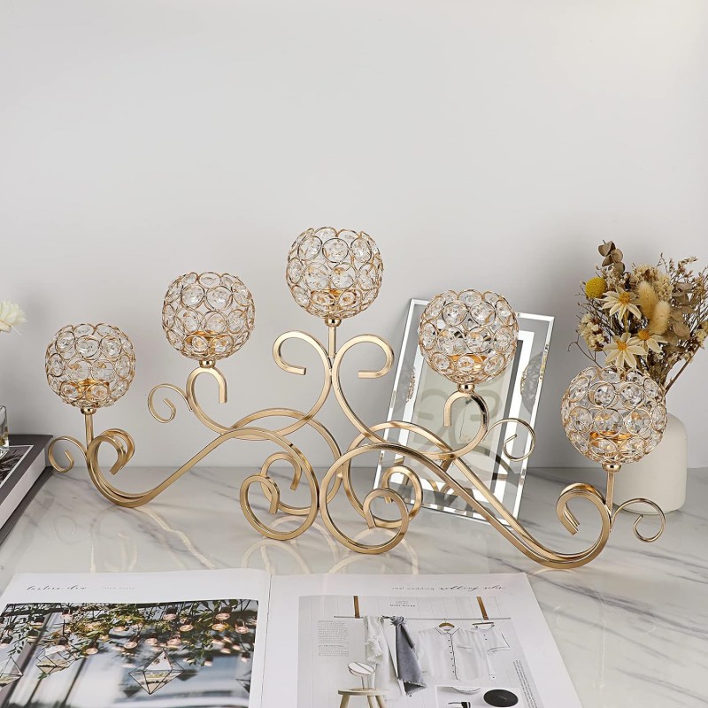 Candelaria de cristal transfronteriza de cinco cabezas creativa europea de hierro forjado romántica cena de velas decorativa de candelabros