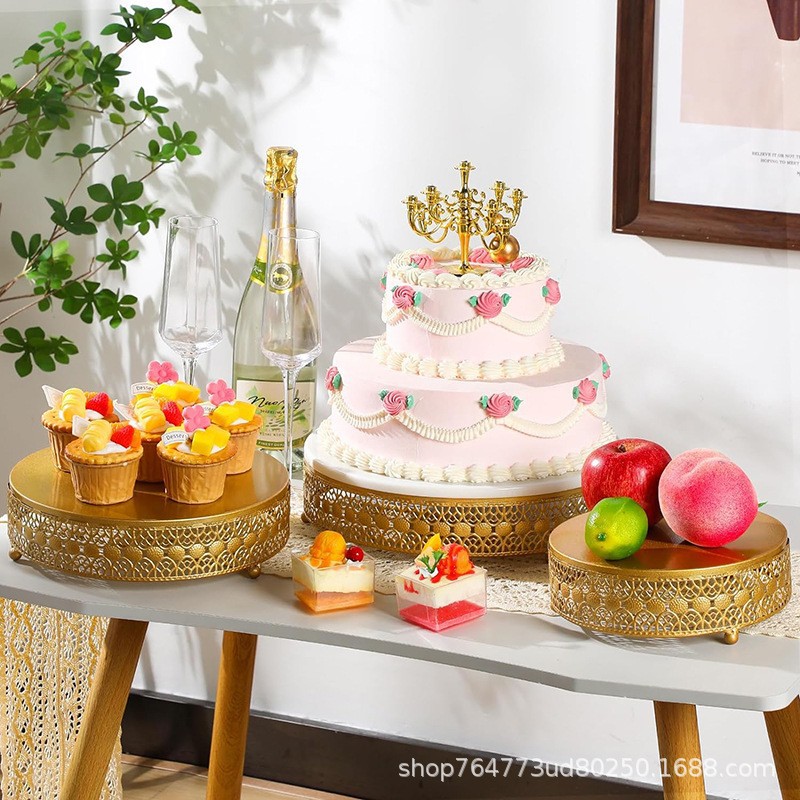 Platos de pastel de oro, props de fotografía de alimentos, bodas europeas, estantes de pastel de hierro forjado, mesa de postres, platos de bocadillos creativos