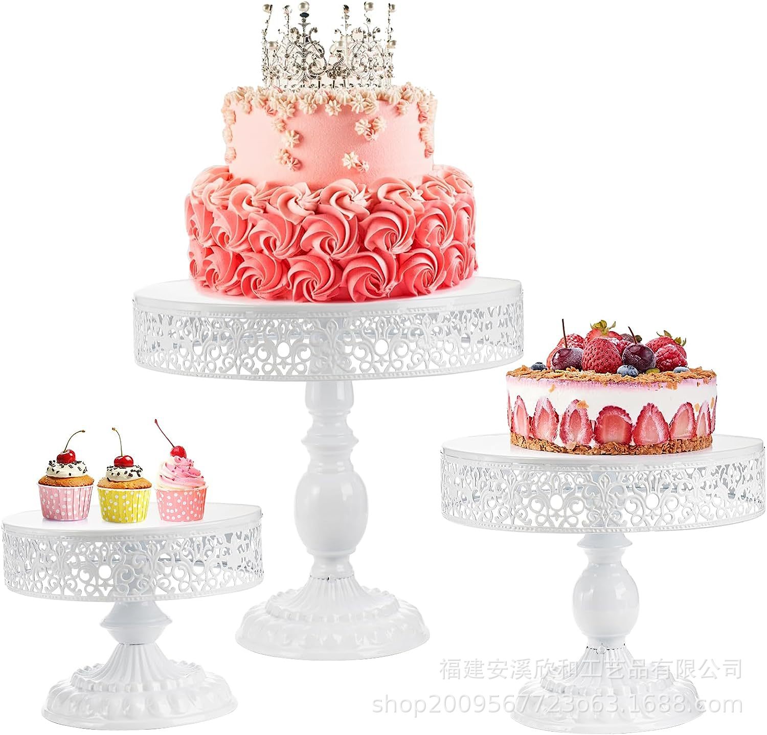 Decoración de mesa de postres de boda blanca estante de pastel europeo props de boda encaje plato de pastel hierro forjado estante de bocadillos