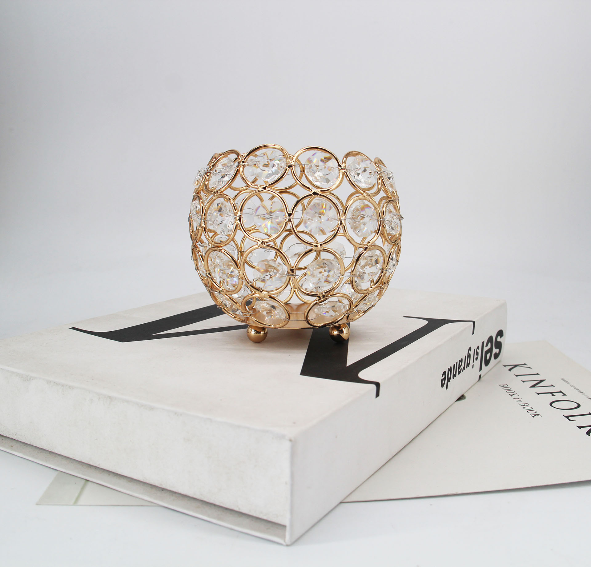 El fabricante vende cuentas octogonales, bola de cristal, fiesta, copa de vela de boda, efecto de atmósfera de vidrio hueco retro creativo, candelabro