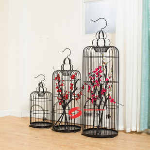 Simple moderno negro pájaro jaula decoración boda apoyos piso-pie hierro pájaro jaula floral artesanía