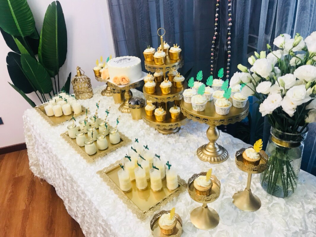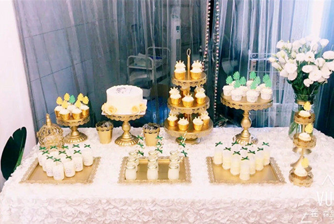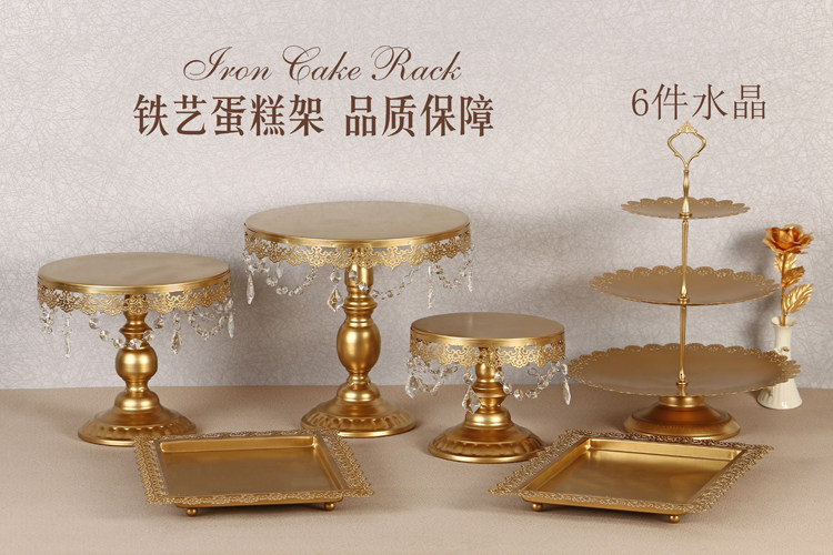 Decoración de mesa de postres de boda de oro, estante de pastel europeo, propósitos de boda, bandeja de pastel de encaje, estante de refrigerio de hierro forjado, 12 juegos