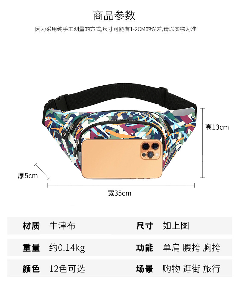 Nueva Bolsa de Cintura para Mujer con Estampados Coloridos, Gran Capacidad, Bolsa de Pecho Cruzada Informal, Bolsa Ligera para Teléfono, Cartera de Cajero