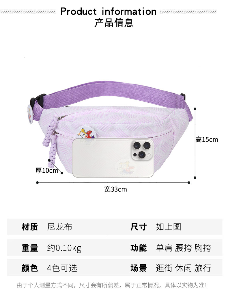Riñonera casual simple y linda, bolso de mensajero de hombro para estudiante fresco y dulce, bolso de pecho ligero para mujer de moda