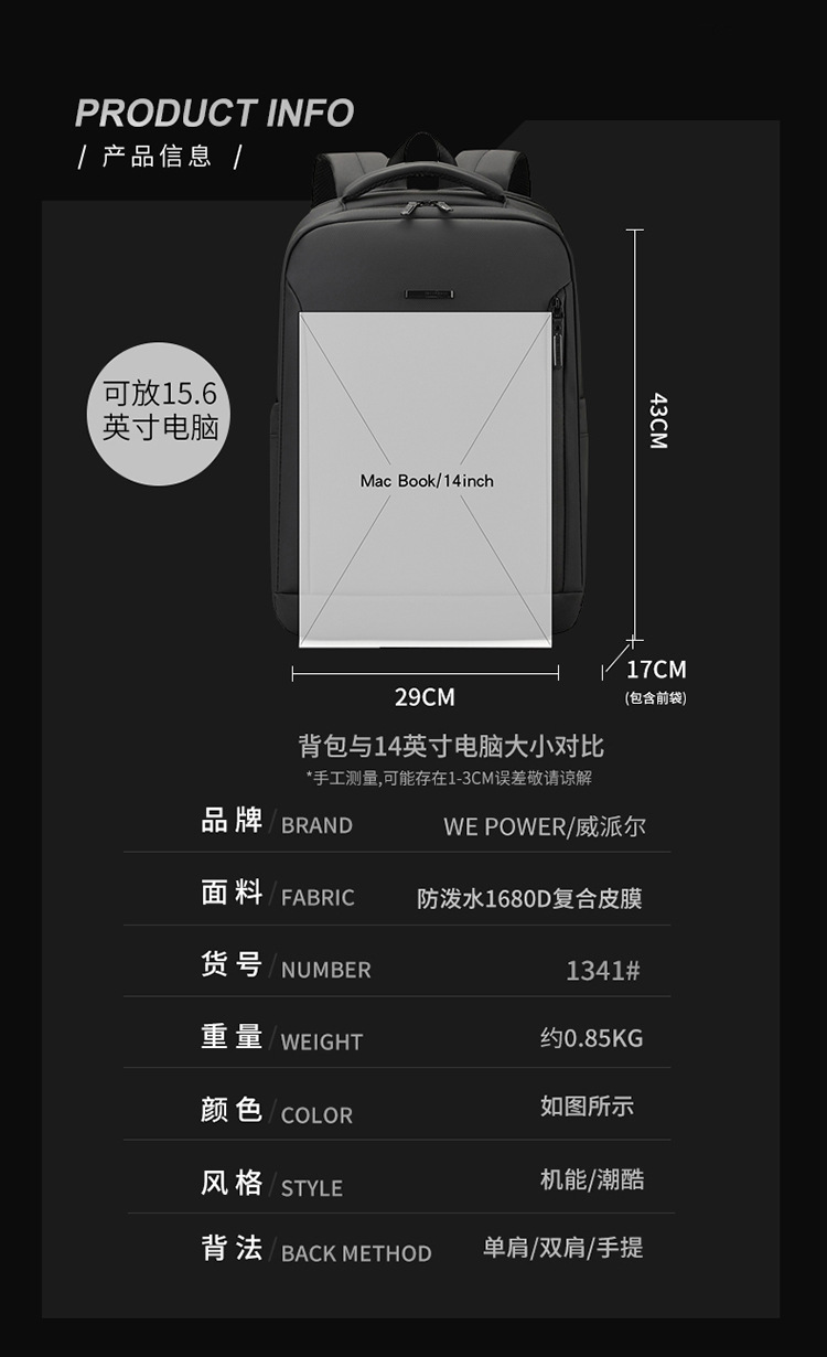 WEPOWER nueva mochila de negocios para hombres, mochila de computadora para estudiantes, mochila de viaje de moda, mochila ligera