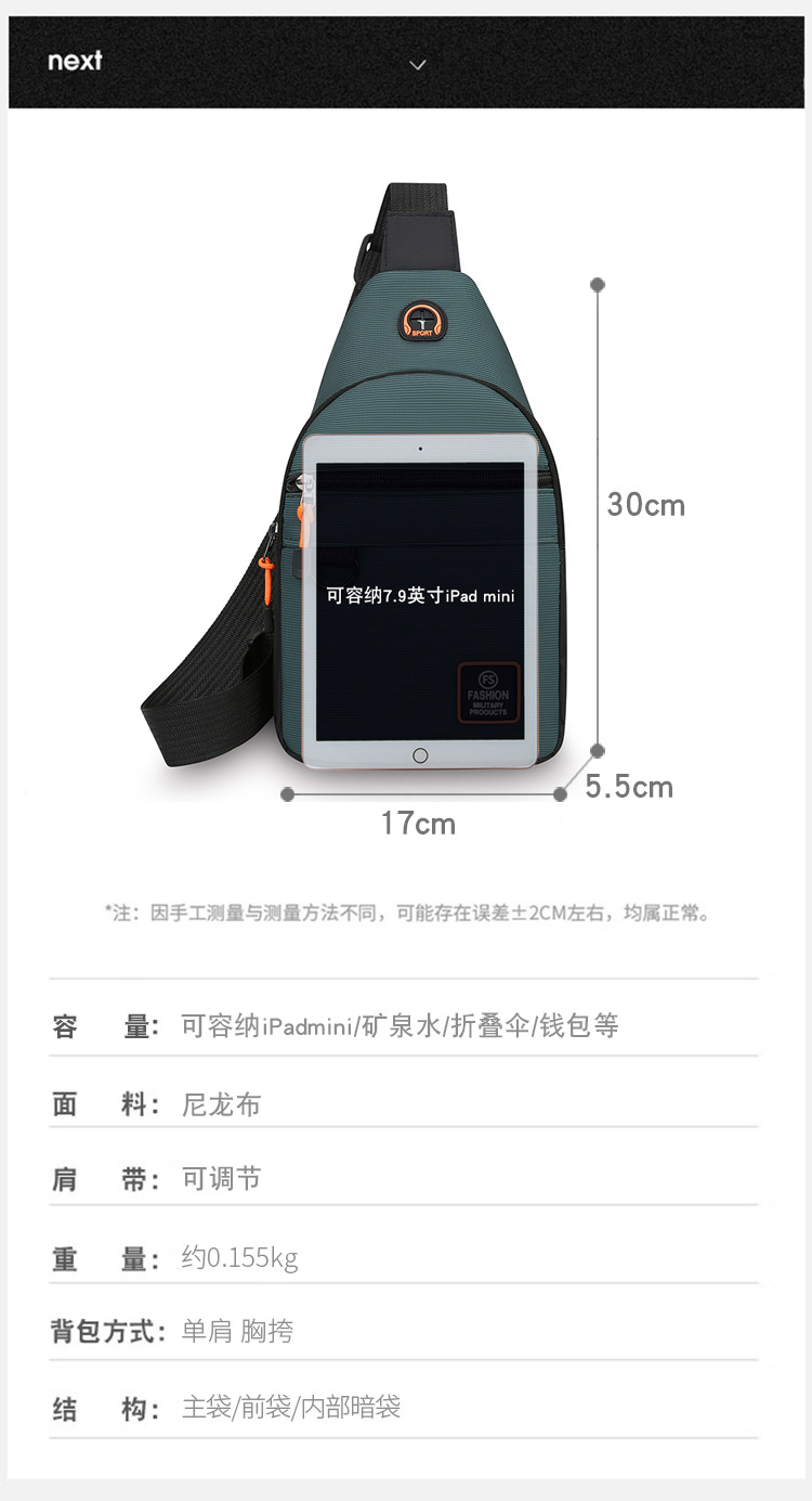 Bolso de pecho de hombre ligero al aire libre, simple viaje de negocios, bolso de hombro casual multicapa, mochila práctica resistente al desgaste