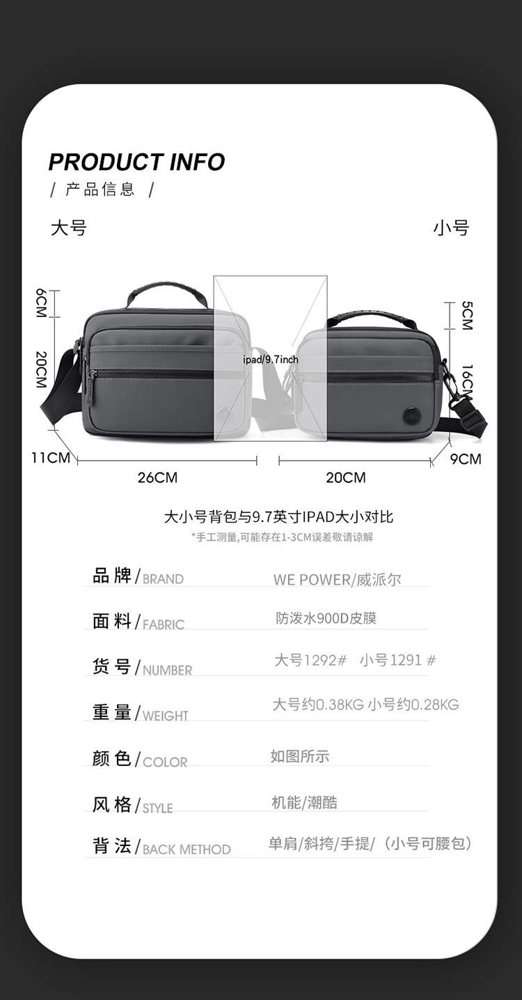 WEPOWER nuevo tipo de bolsa de moda para hombres, bolsa de hombro deportiva para viajar, bolsa de viaje para viajar, bolsa de hombre