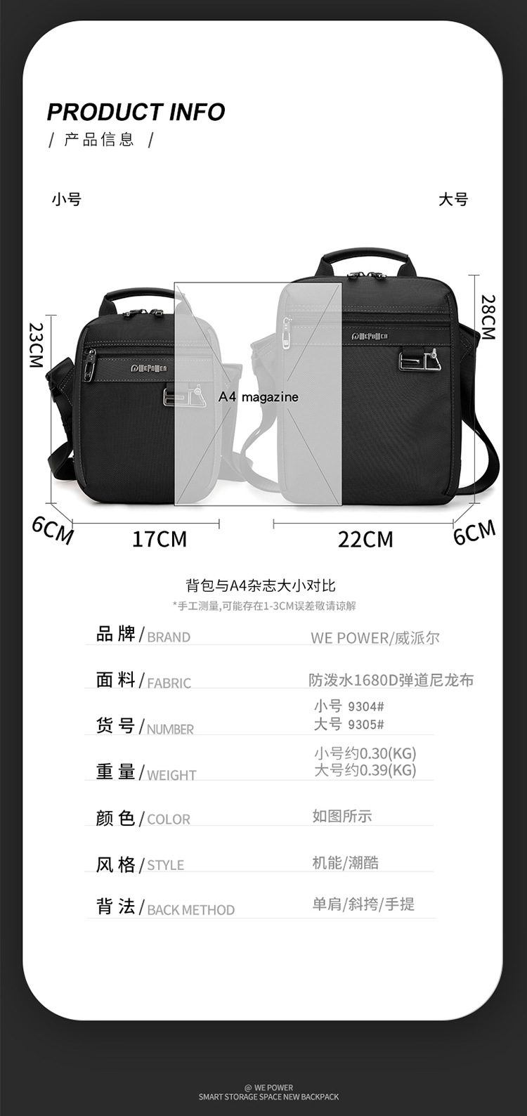 WEPOWER nuevo viaje de negocios de ocio para hombres inclinado viaje al aire libre plano vertical bolso de hombro
