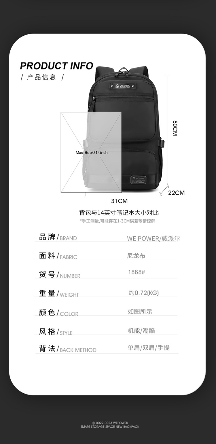 WEPOWER nueva mochila casual para hombre, bolso para computadora portátil de cercanías, mochila de viaje de negocios de gran capacidad