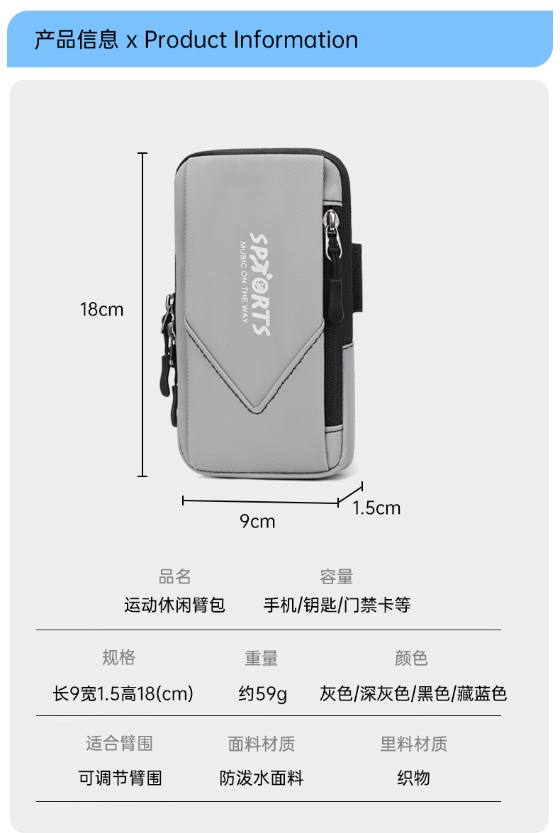 Bolsa de brazo de juego de deportes al aire libre ligera y simple para hombres y mujeres corriendo bolsa de almacenamiento de teléfonos móviles para salir bolsa de cambio portátil