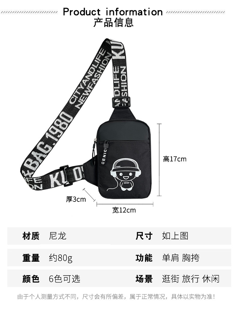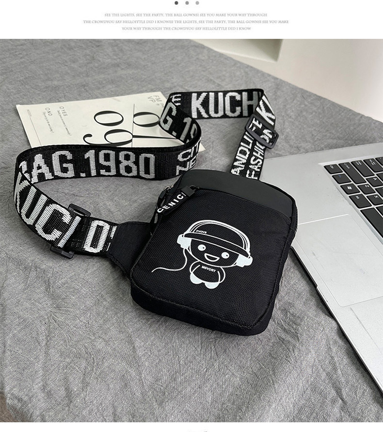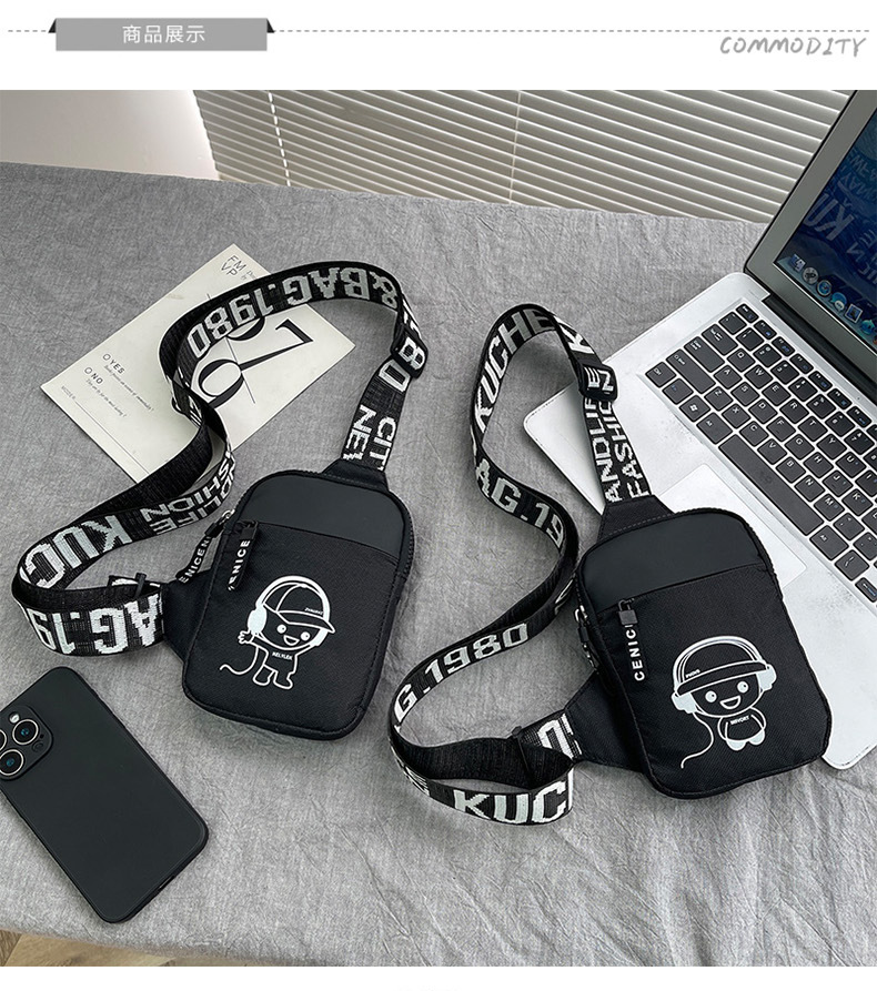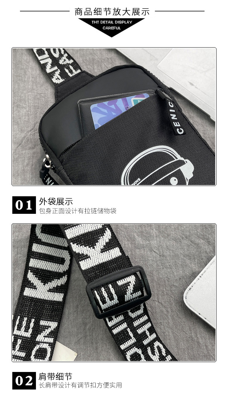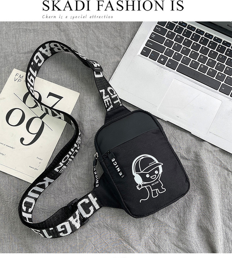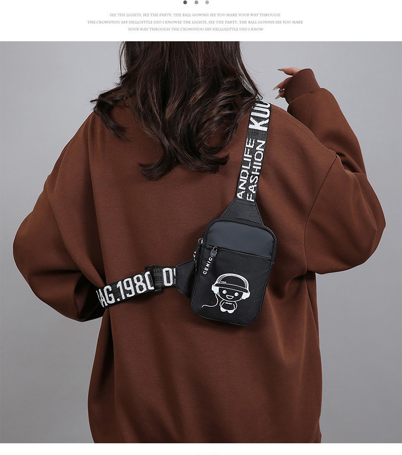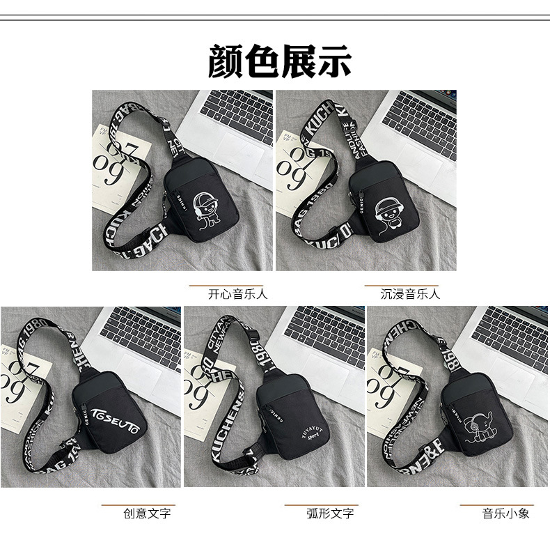 Personalidad de nuevo bolso de pecho de moda de nylon de hombre y mujer bolso deportivo ligero, bolso de hombro para teléfonos móviles impresos de música para niños
