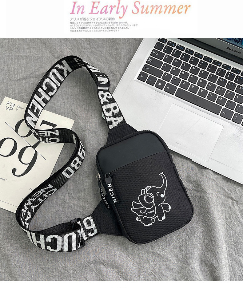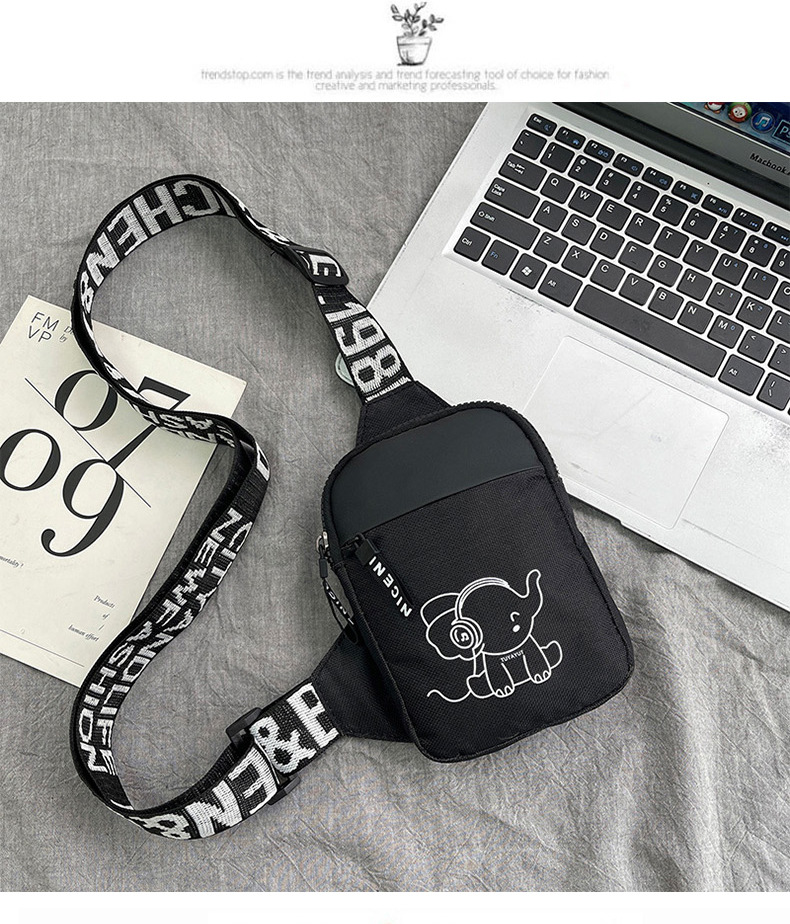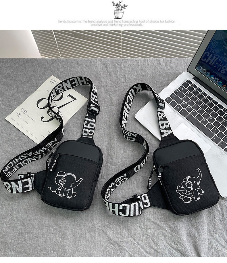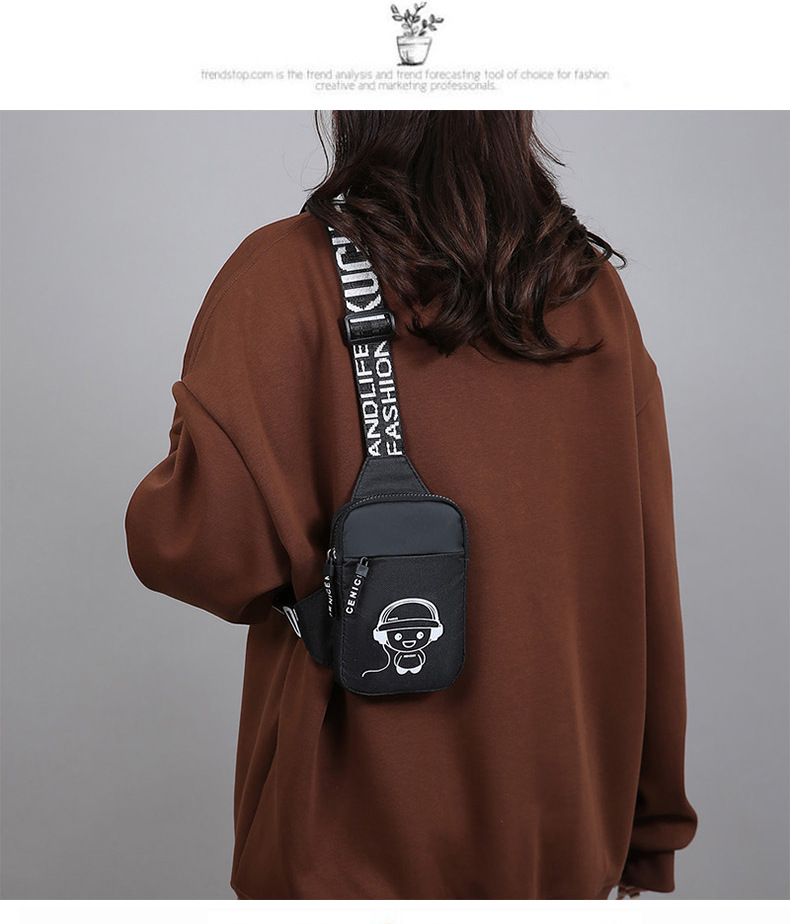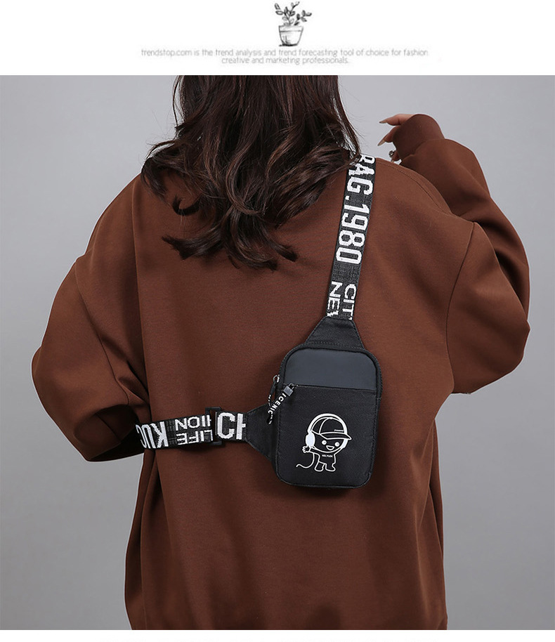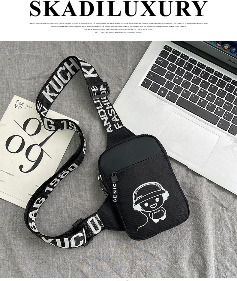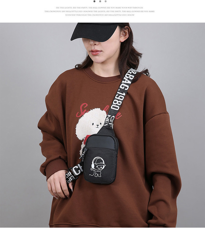 Personalidad de nuevo bolso de pecho de moda de nylon de hombre y mujer bolso deportivo ligero, bolso de hombro para teléfonos móviles impresos de música para niños