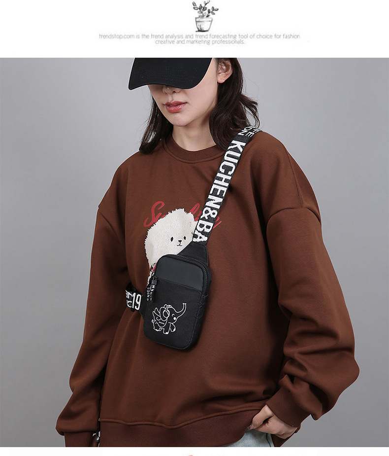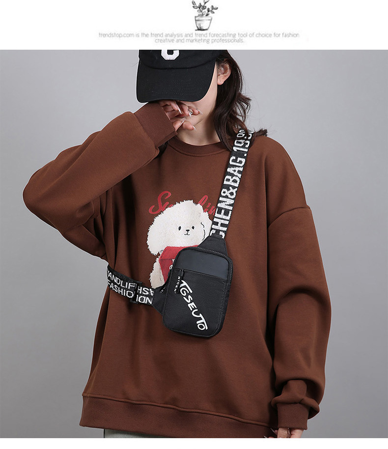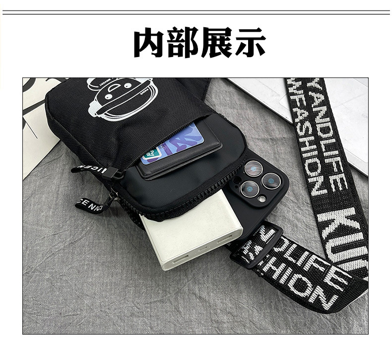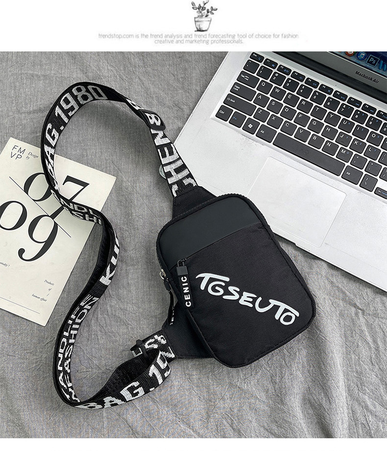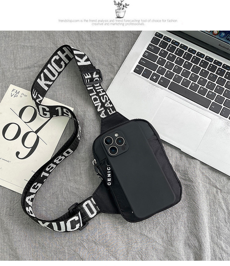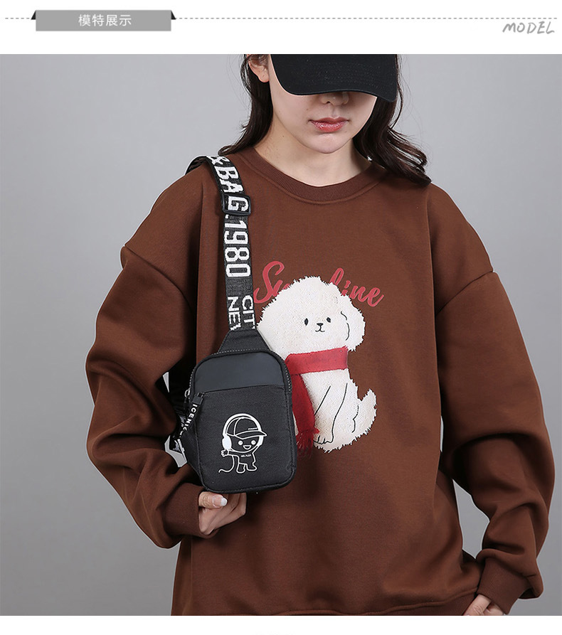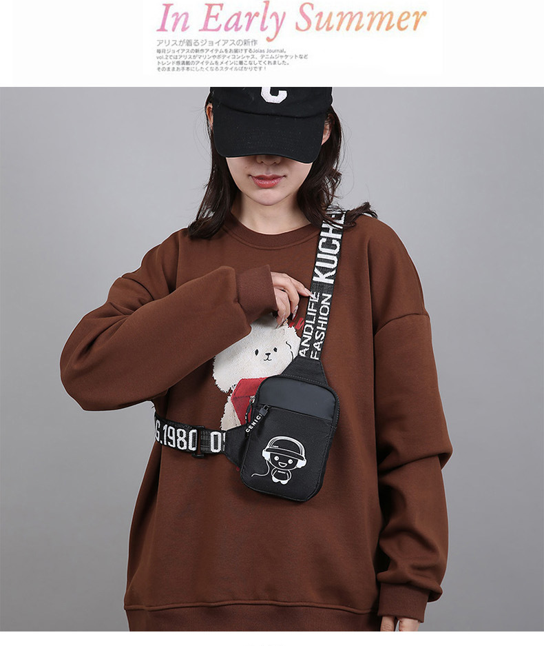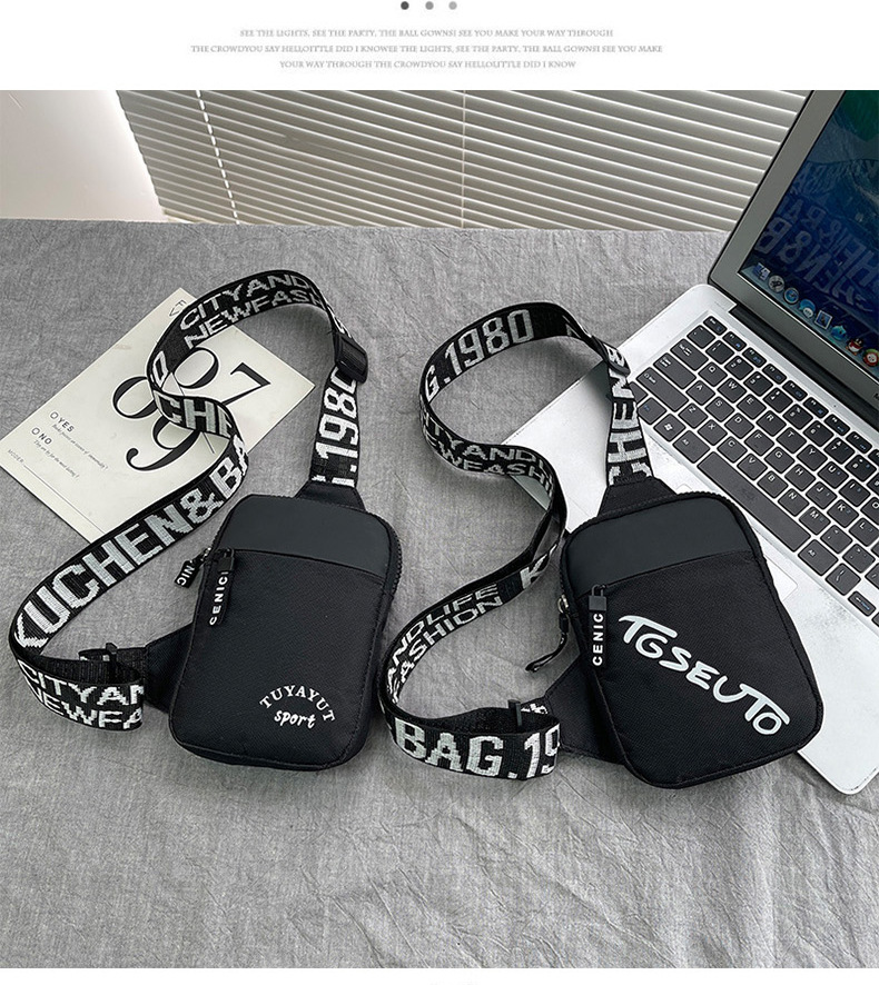 Personalidad de nuevo bolso de pecho de moda de nylon de hombre y mujer bolso deportivo ligero, bolso de hombro para teléfonos móviles impresos de música para niños
