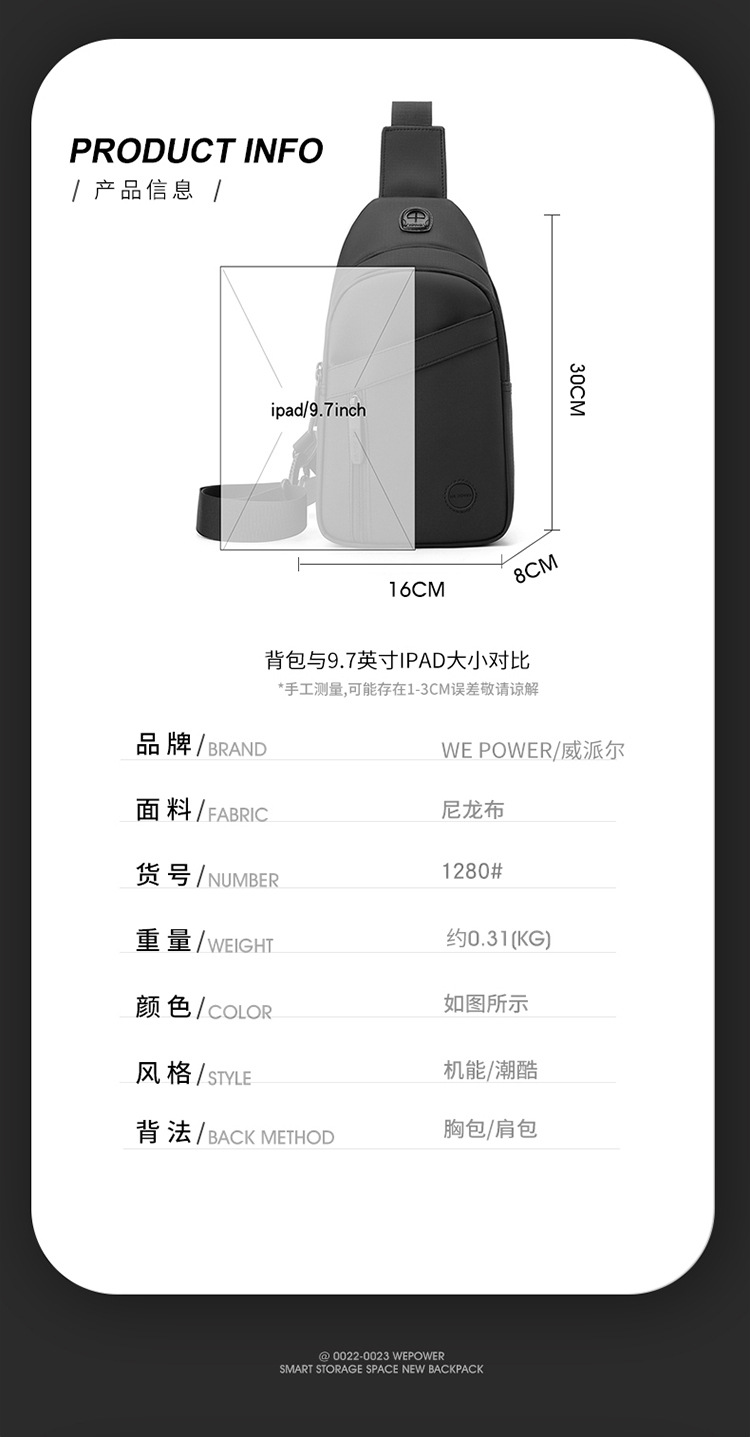 WEPOWER nuevo bolso de pecho, bolso de pecho de hombre, bolso de hombro, mochila casual, bolso de hombre