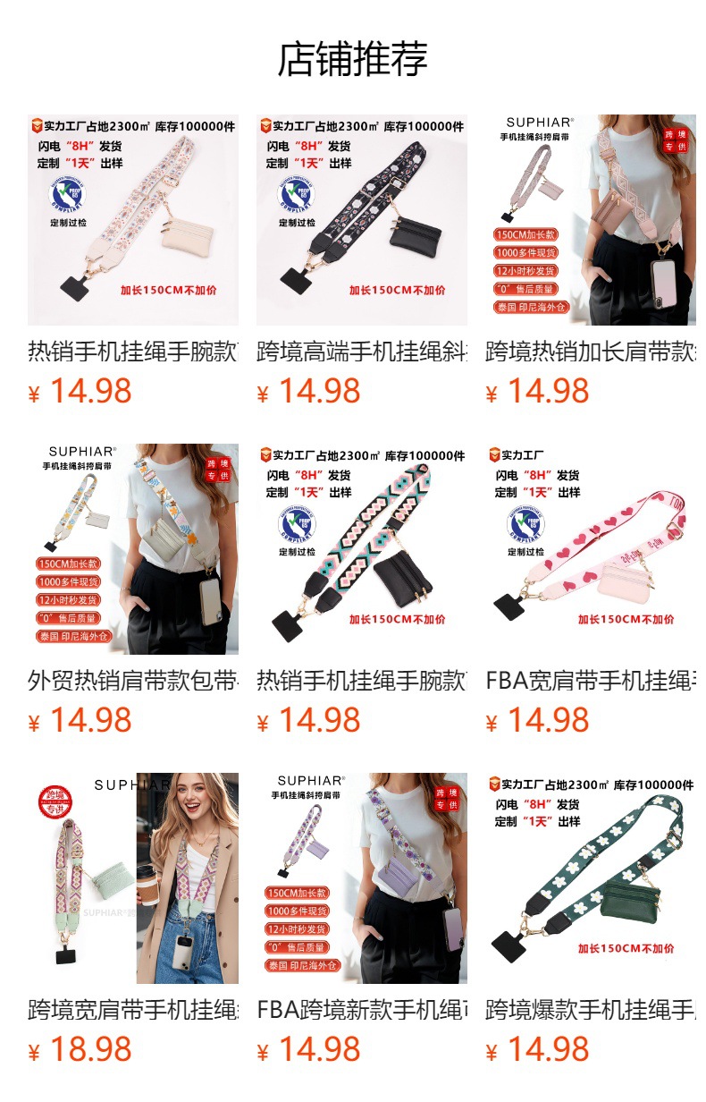 Cordón de teléfono móvil transfronterizo FBA, muñeca desmontable, cinturón de hombro de mensajero de teléfono móvil de alta gama, bolso de tarjeta de cambio, cuerda de teléfono móvil