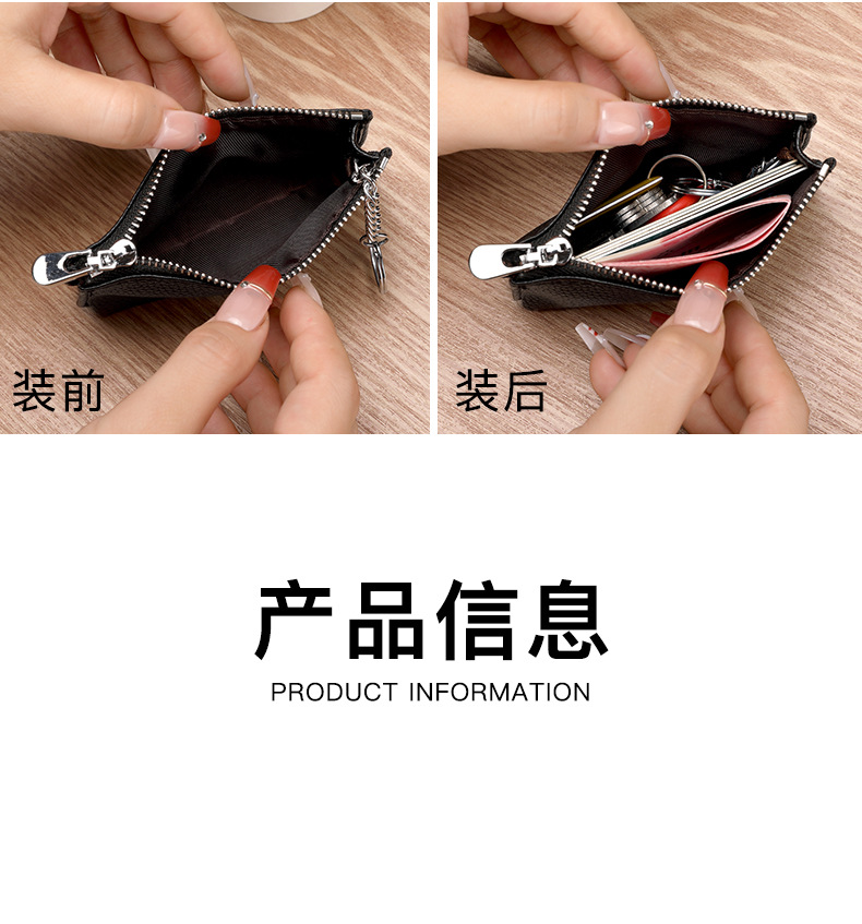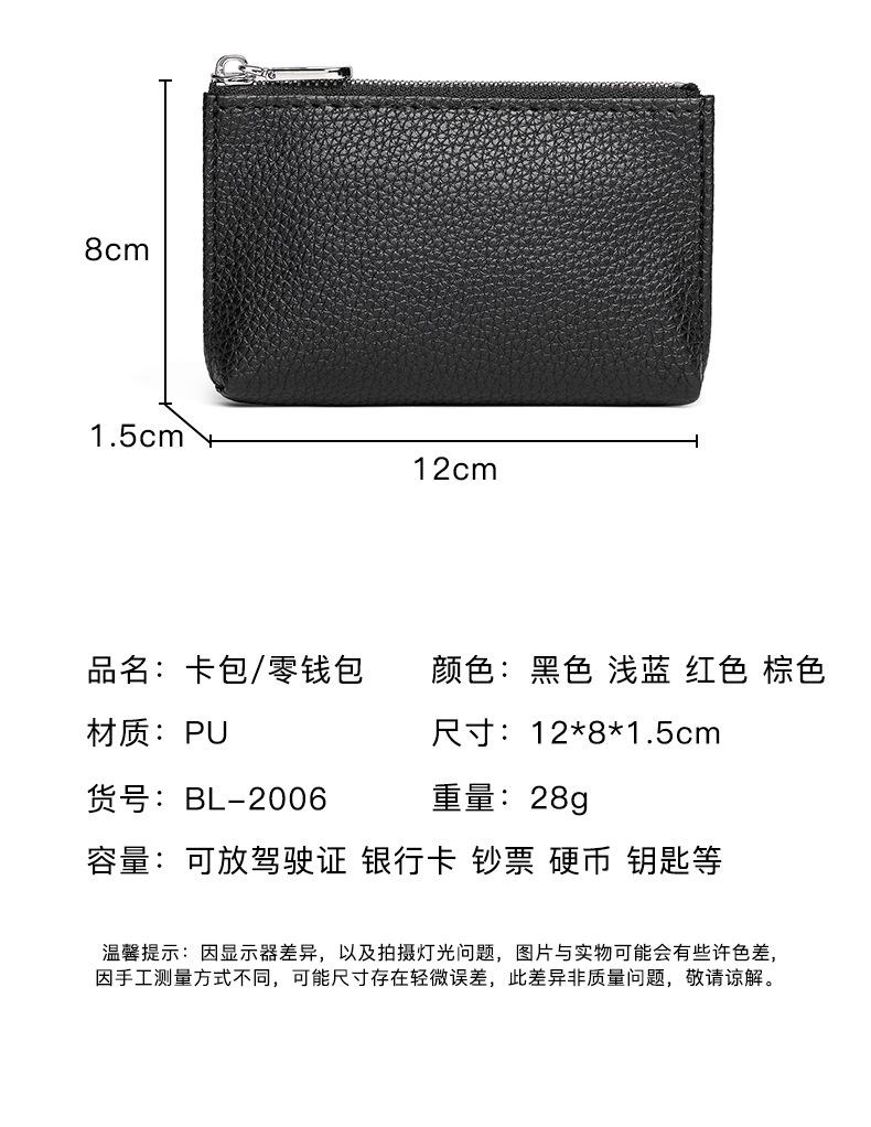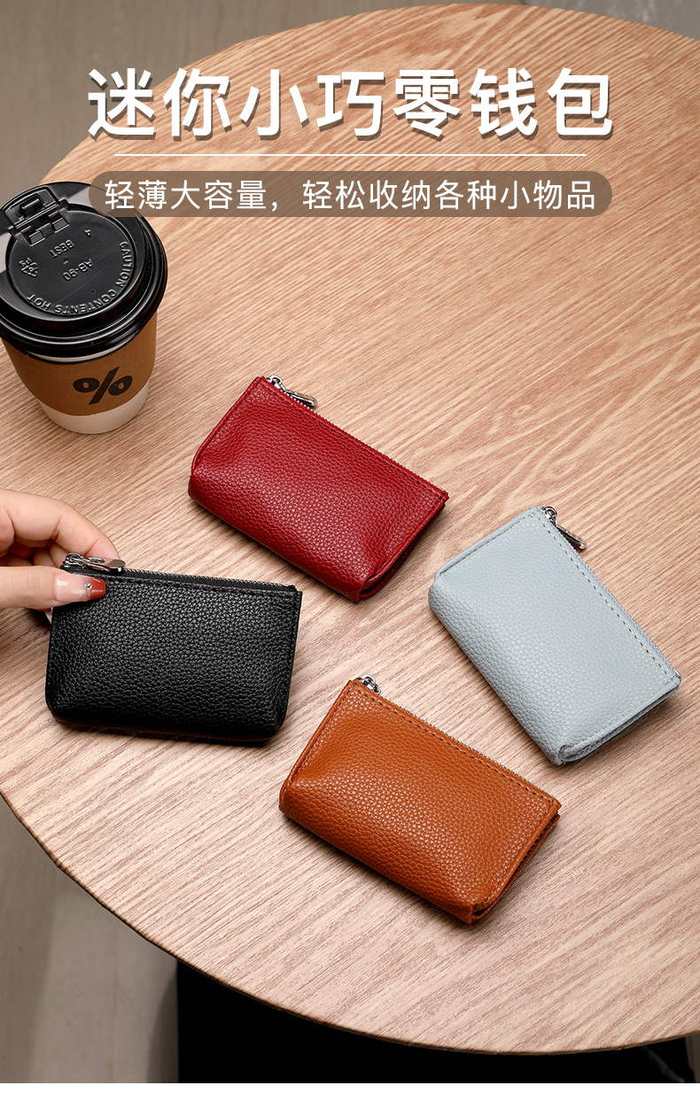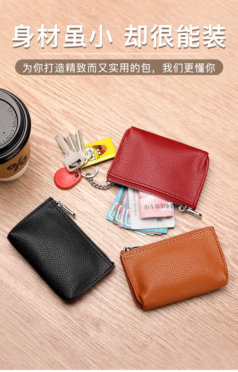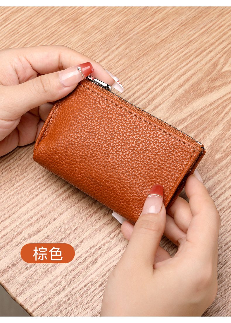 Lichi estampado bolso de cambio de mujer nueva bolsa de cremallera bolsa de monedas de color sólido PU bolsa de tarjetas de cuero suave bolso de llaves