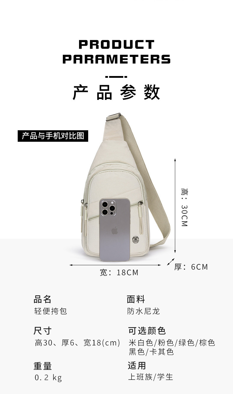 Bolso de pecho para mujer de nuevo estilo de comercio exterior Bolso de hombro de nailon de todo fósforo de moda de viaje al aire libre Bolso de mensajero casual simple de color sólido