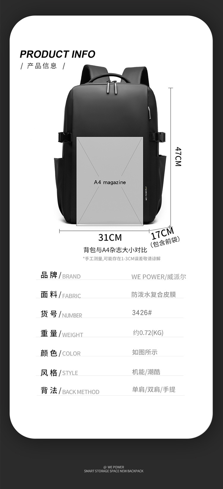 WEPOWER nuevo tipo de hombre de gran capacidad de mochila de computadora de viaje simple mochila de negocios mochila impermeable