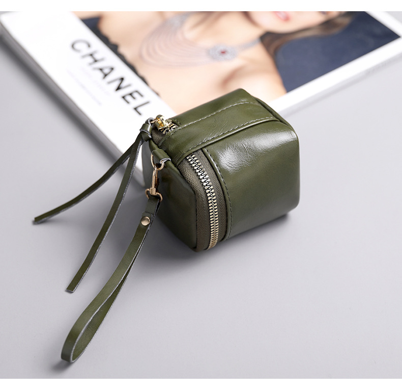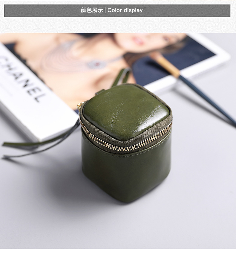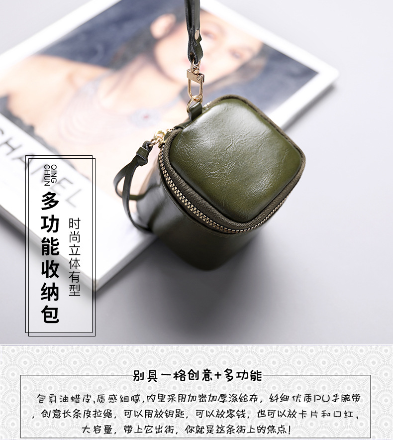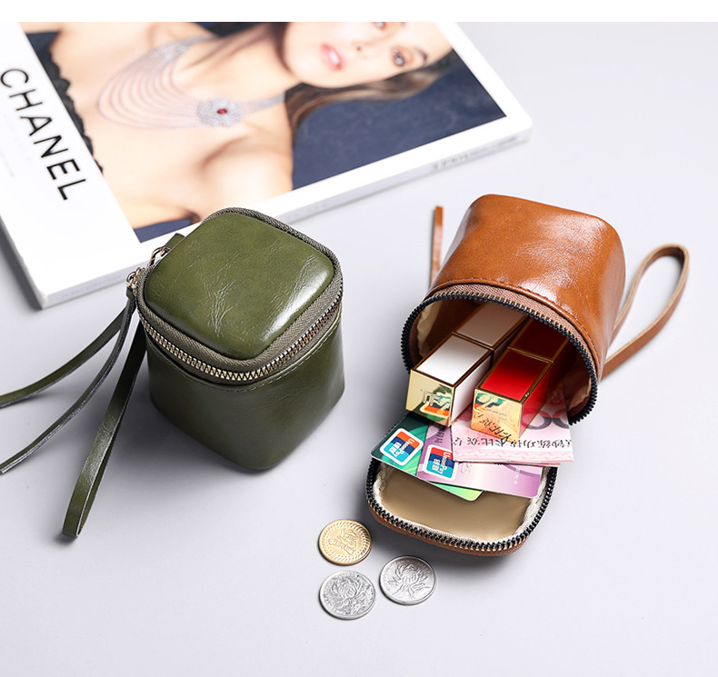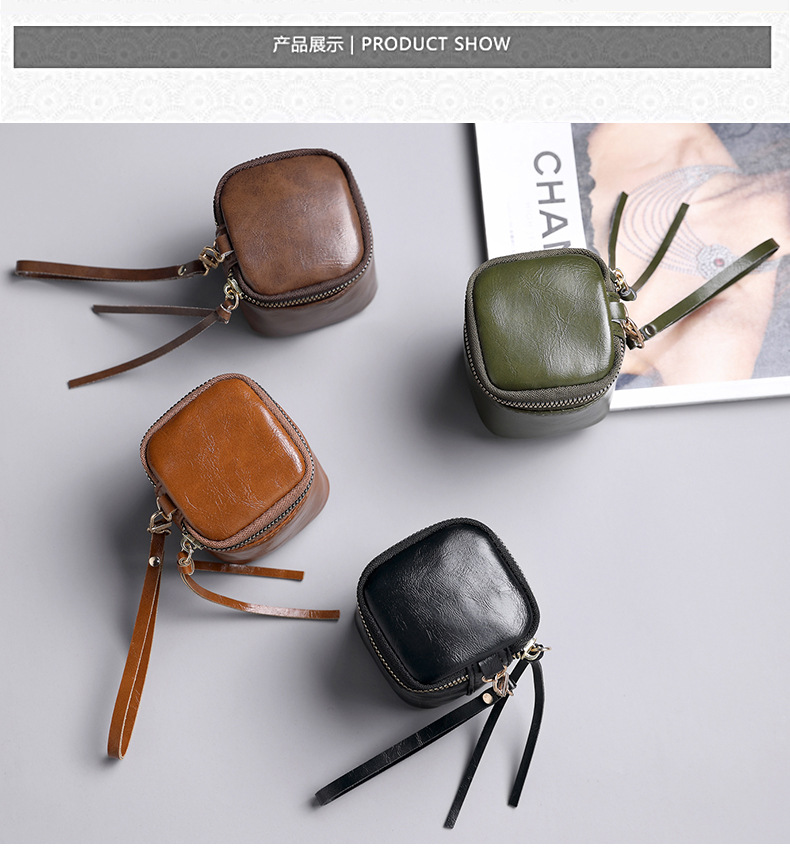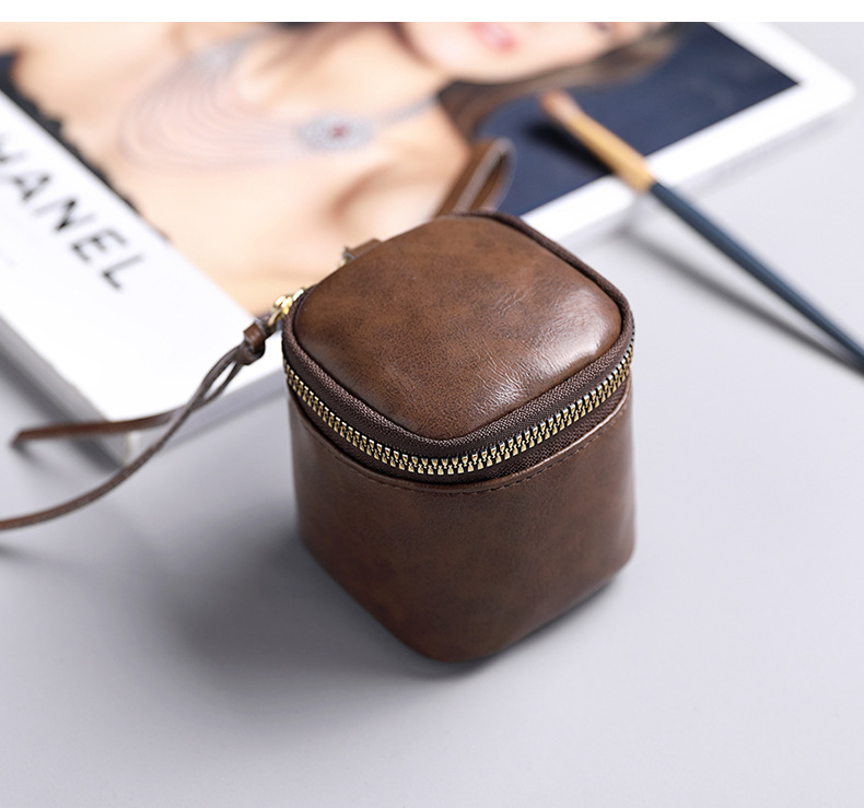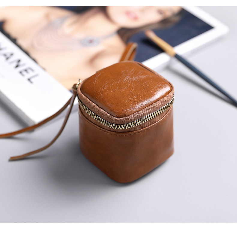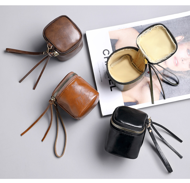 Caja para llaves de cuero pu de cera de aceite, caja para llaves, barra de labios de nicho de estilo retro, monedero de monedas de almacenamiento Wenwan