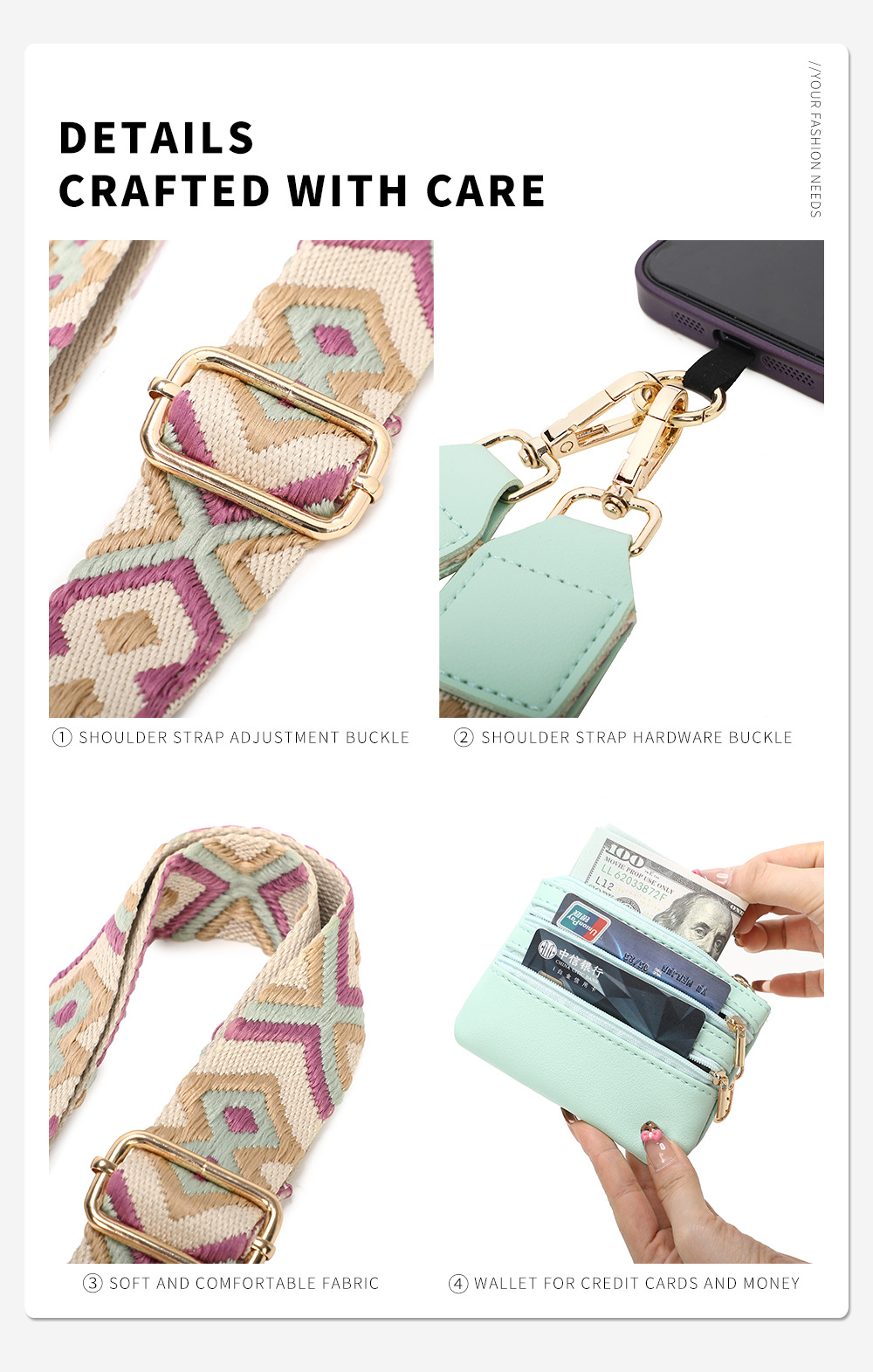 Amazon explosión con bolso de cambio correa de hombro móvil desmontable estilo de viaje ensanchado alargado cinturón de teléfono móvil